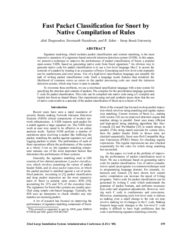 (PDF) Fast packet classification for Snort by native compilation of rules