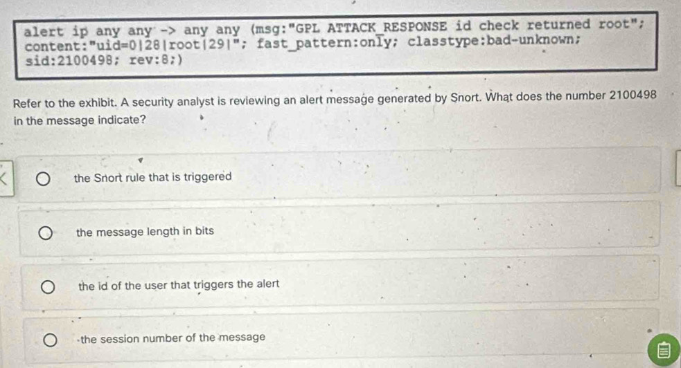 Solved: alert ip any any -> any any (msg:"GPL ATTACK RESPONSE id check ...