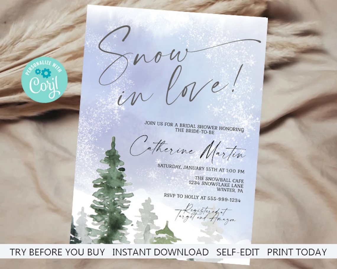Snow in Love Bridal Shower Invitation: Winter Forest (editable Invite ...