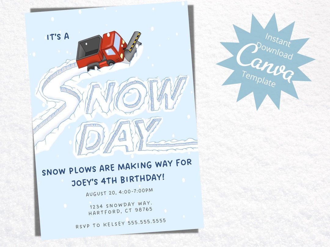 Snow Day Birthday Party Invitation, Winter Birthday, Snow Plow Kids ...