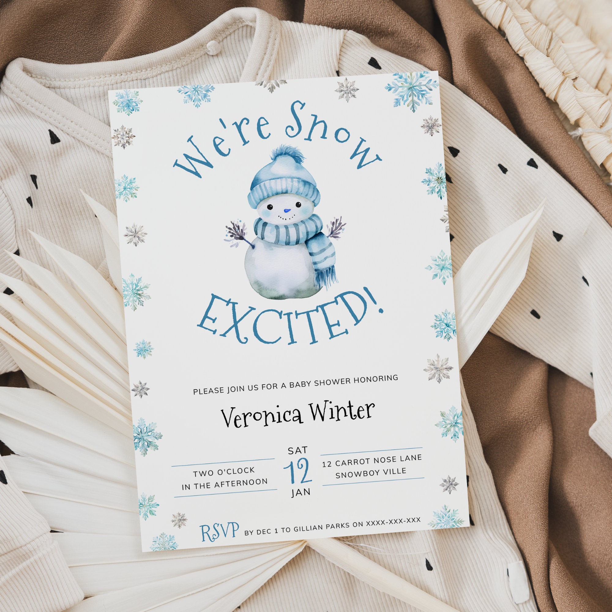 Blue Winter Snow Baby Shower Invitation. We're Snow Excited for This ...