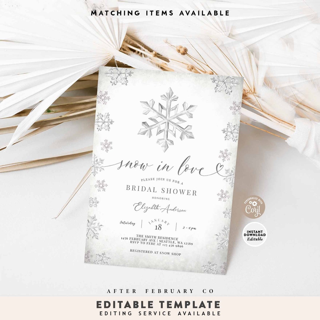 EDITABLE Snow in Love Bridal Shower Winter Invitation Gray Silver ...
