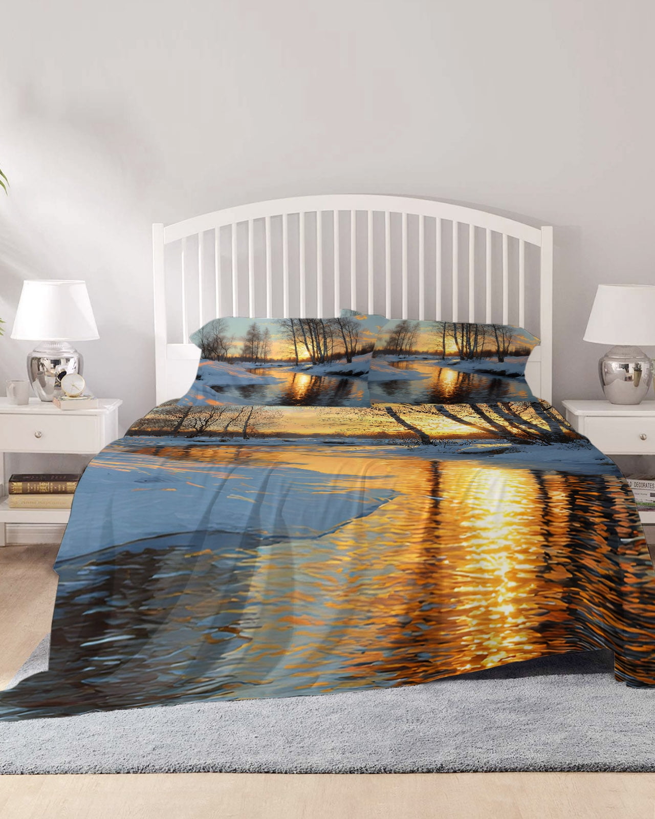 4 Piece Queen Sheet Set Winter Sunset Sheets Set for Queen Size Bed ...