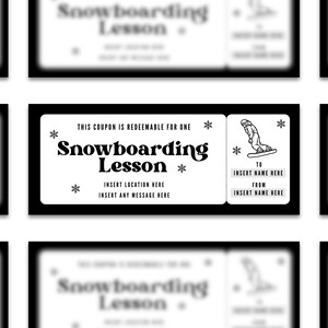 Editable Snowboarding Lesson Coupon, Custom Snowboarding Lift Ticket ...