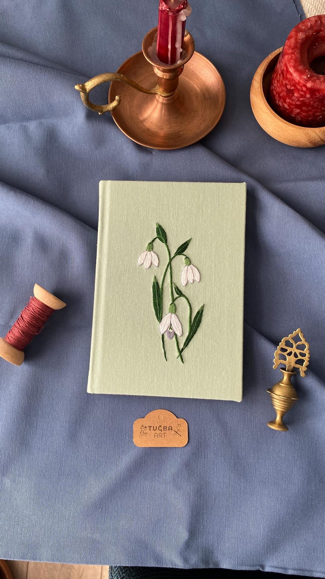 A6 Notebook Cover with Embroidered Snowdrops - Folksy
