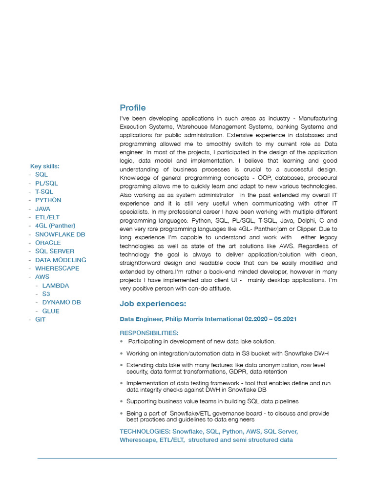 Snowflake Developer Resume and Skills | PDF