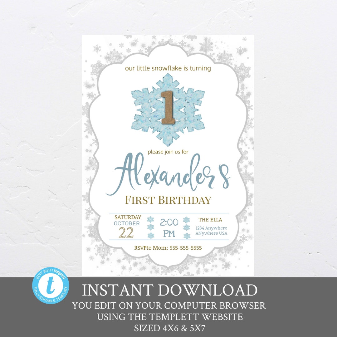 Editable Snowflake Birthday Invitation, Winter Onederland 1st Birthday ...