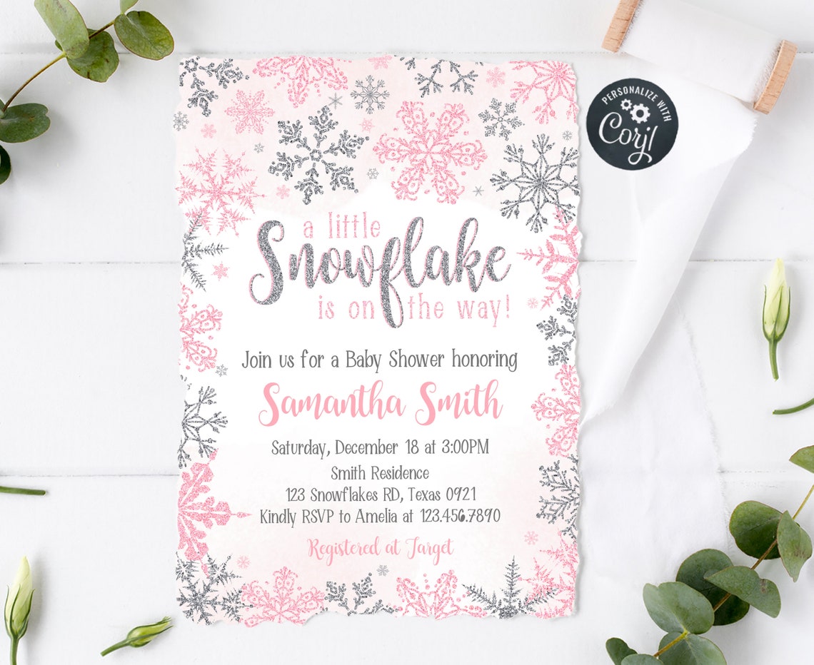 Editable Snowflake Baby Shower Invitation, A Little Snowflake is on the ...