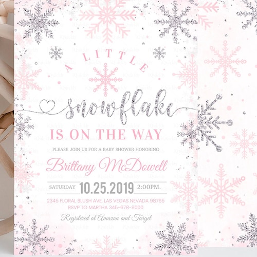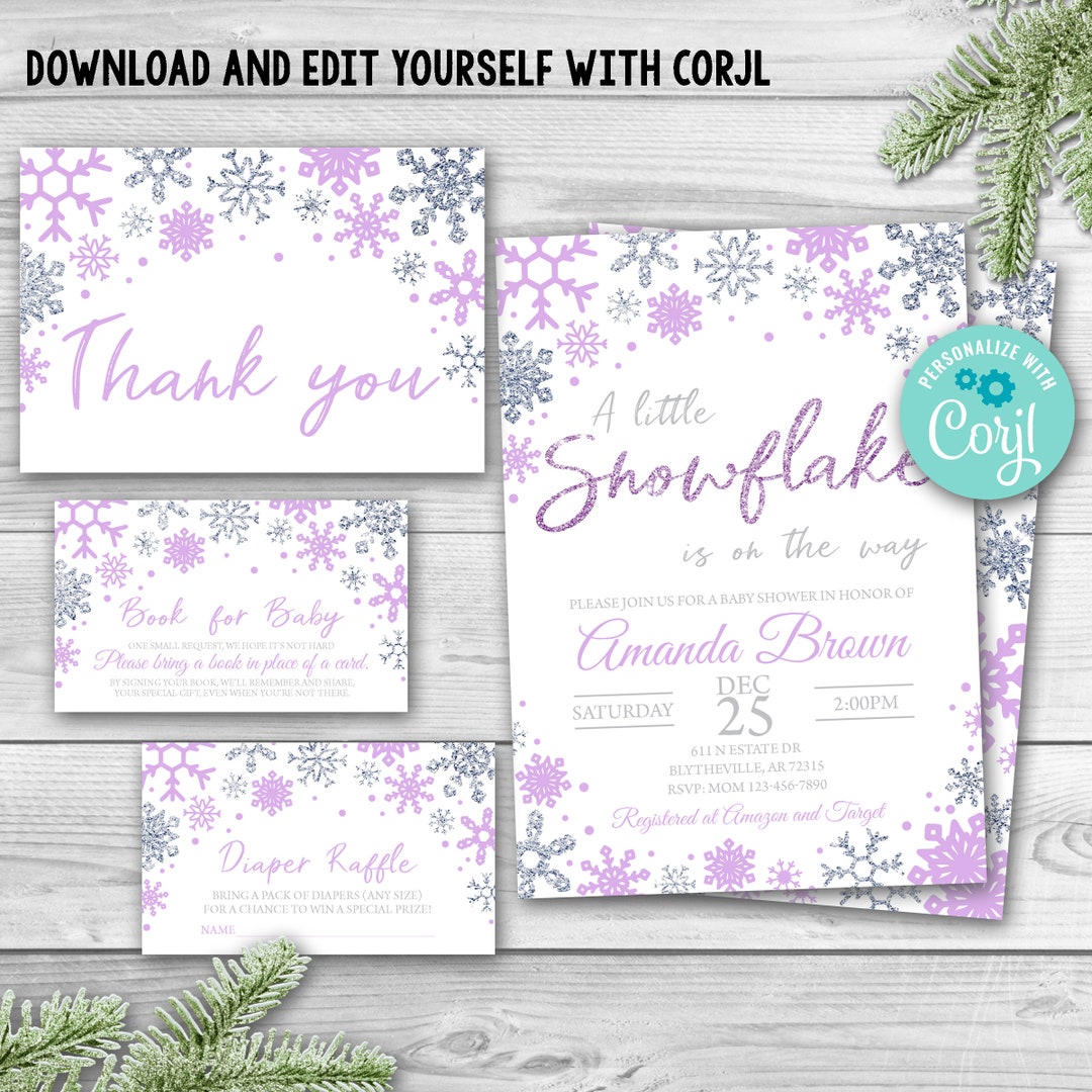 Editable Snowflake baby shower invitation Set, A little snowflake is on ...