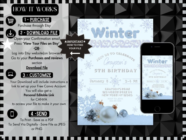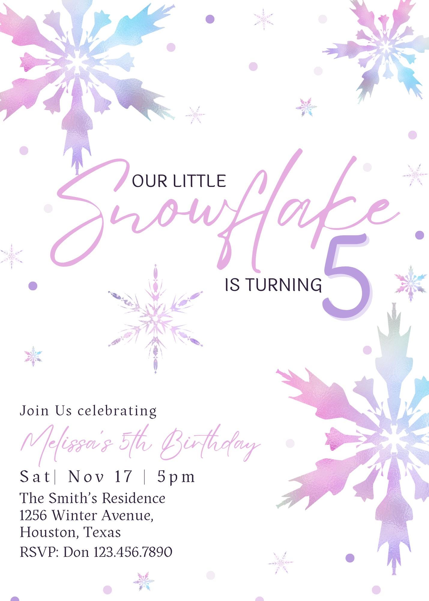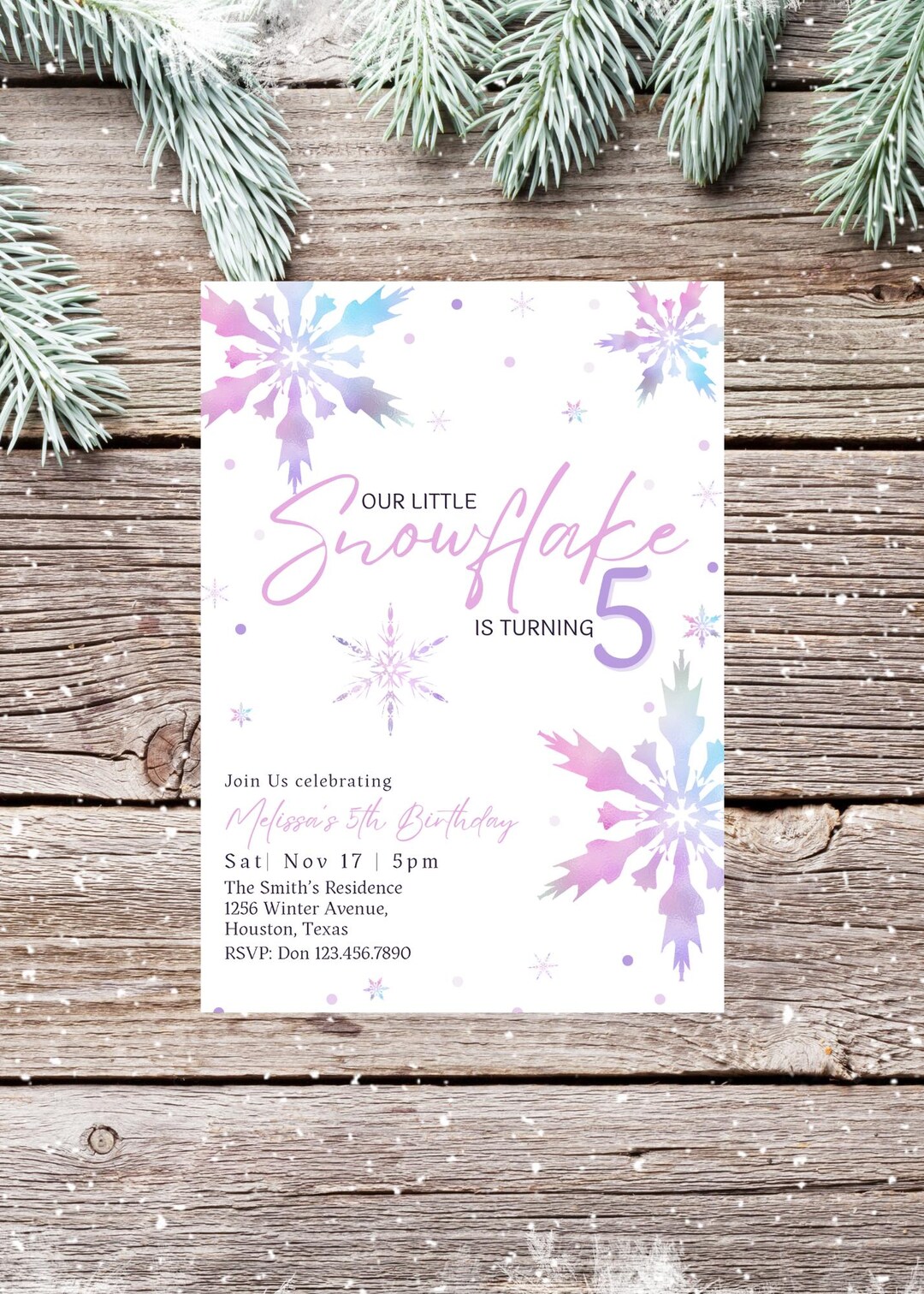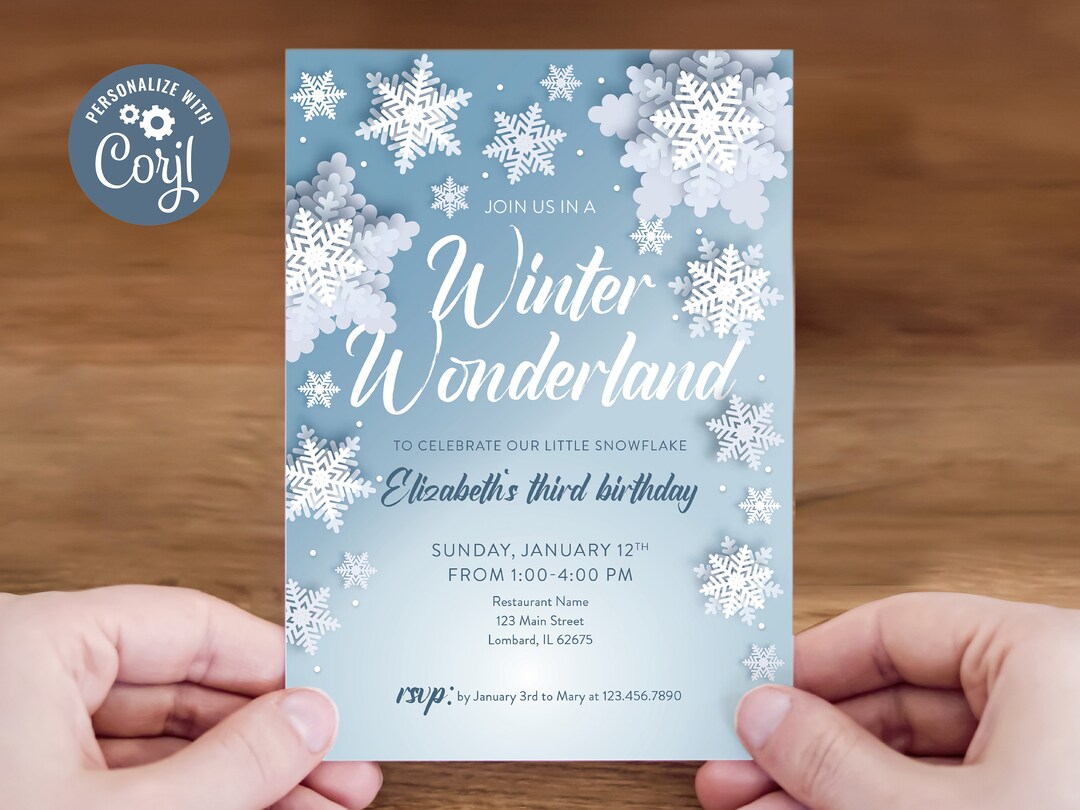Editable Snowflake Birthday Invite – Winter Wonderland Theme, 5x7 Corjl ...