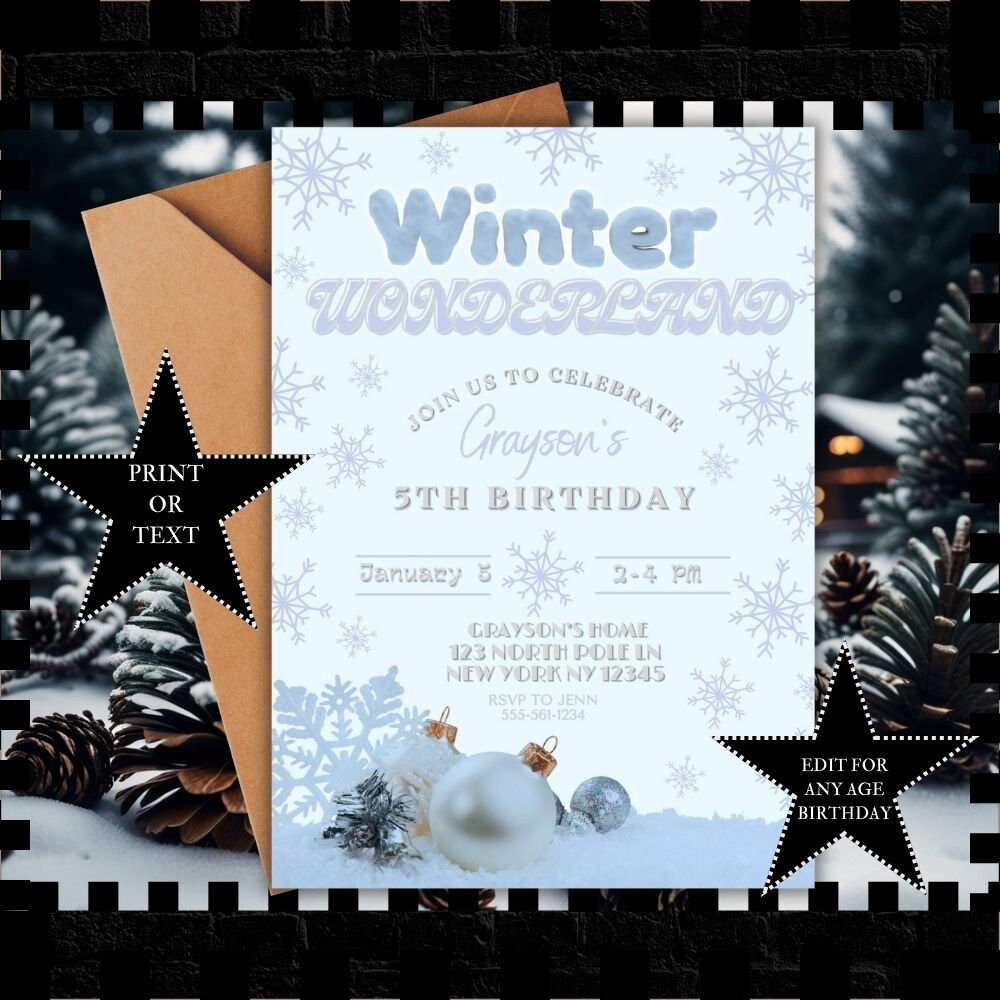 EDITABLE Winter Wonderland Birthday Invitation Blue and Silver Winter ...