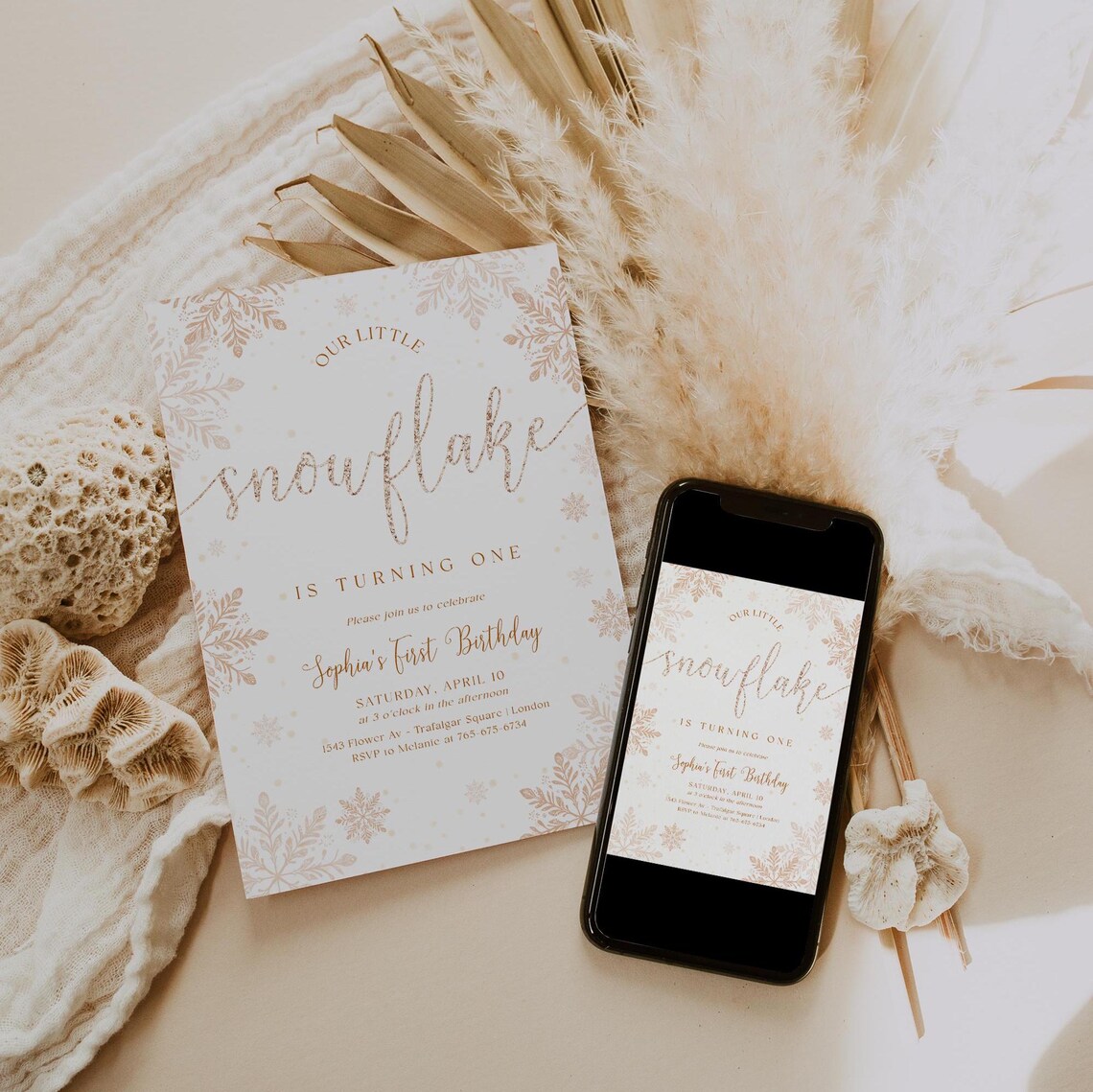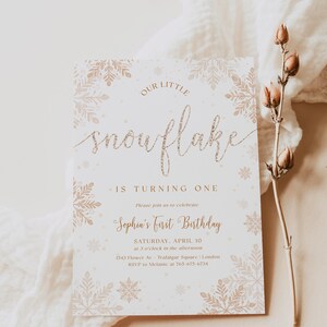 Editable Our Little Snowflake Birthday Invitation, Girl Winter ...