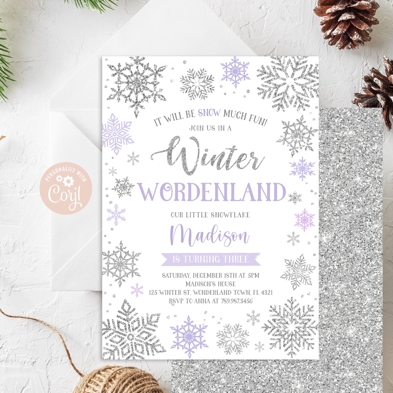 EDITABLE Winter Wonderland Invitation Snowflakes Lavender - Etsy