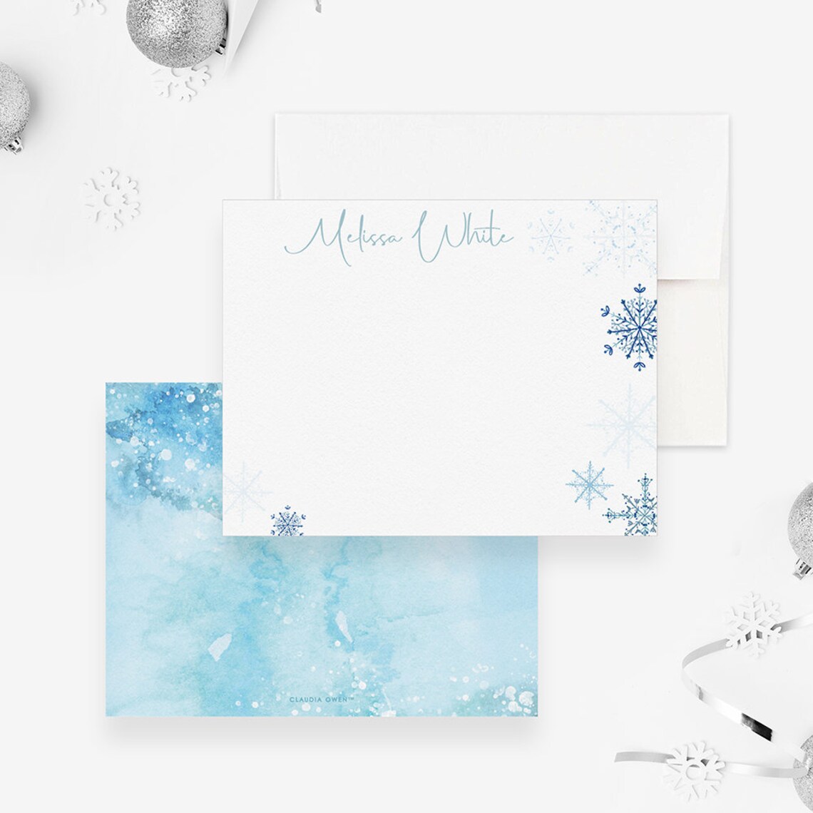 Winter Snowflakes Note Cards - Personalized Notes - Set of 8 - Folded ...