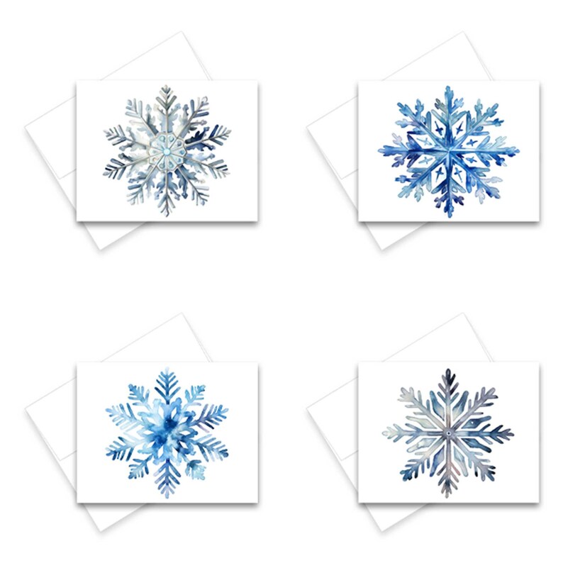 Blue Snowflake Christmas Cards, 8 Blank Matching Note Cards, Winter ...
