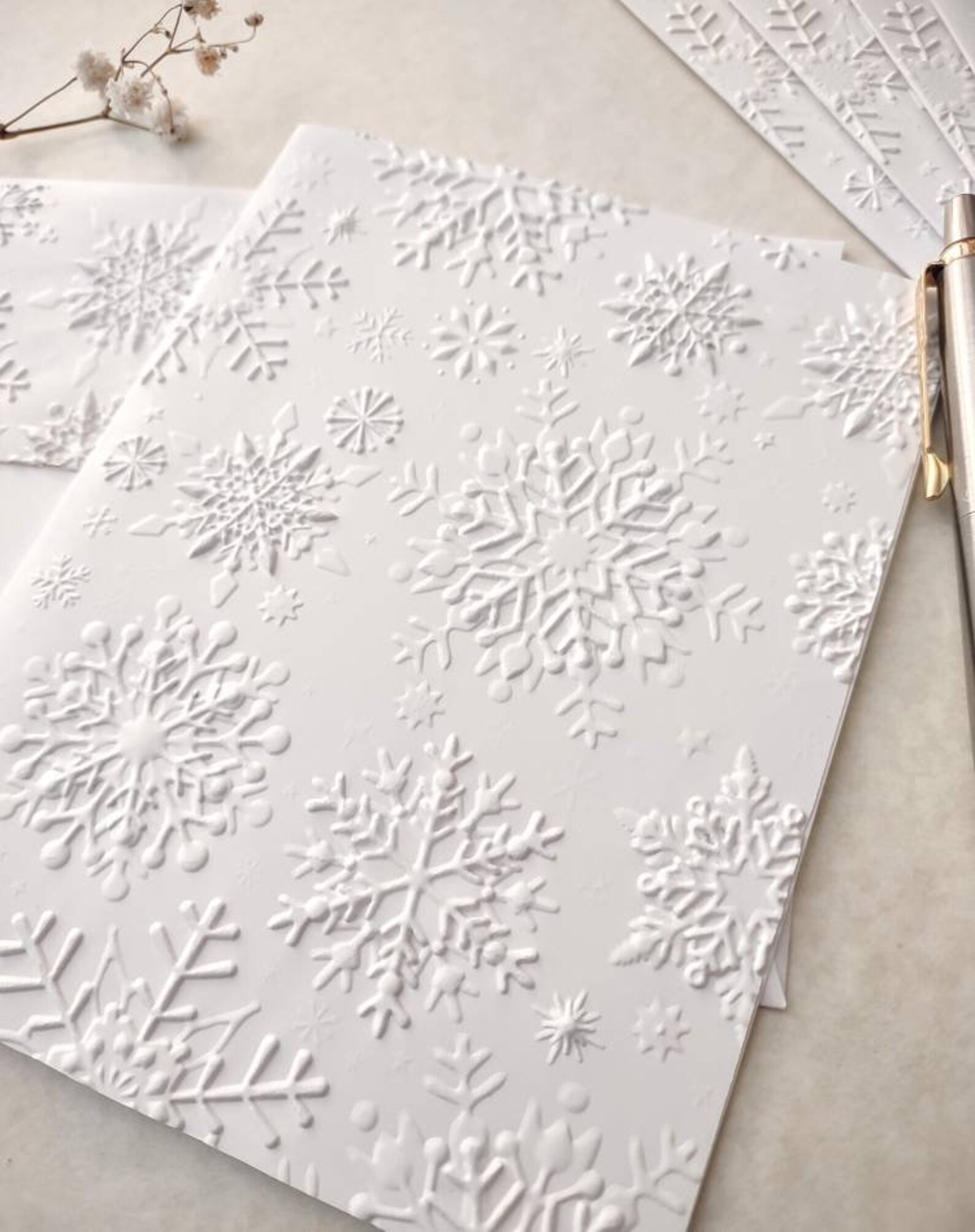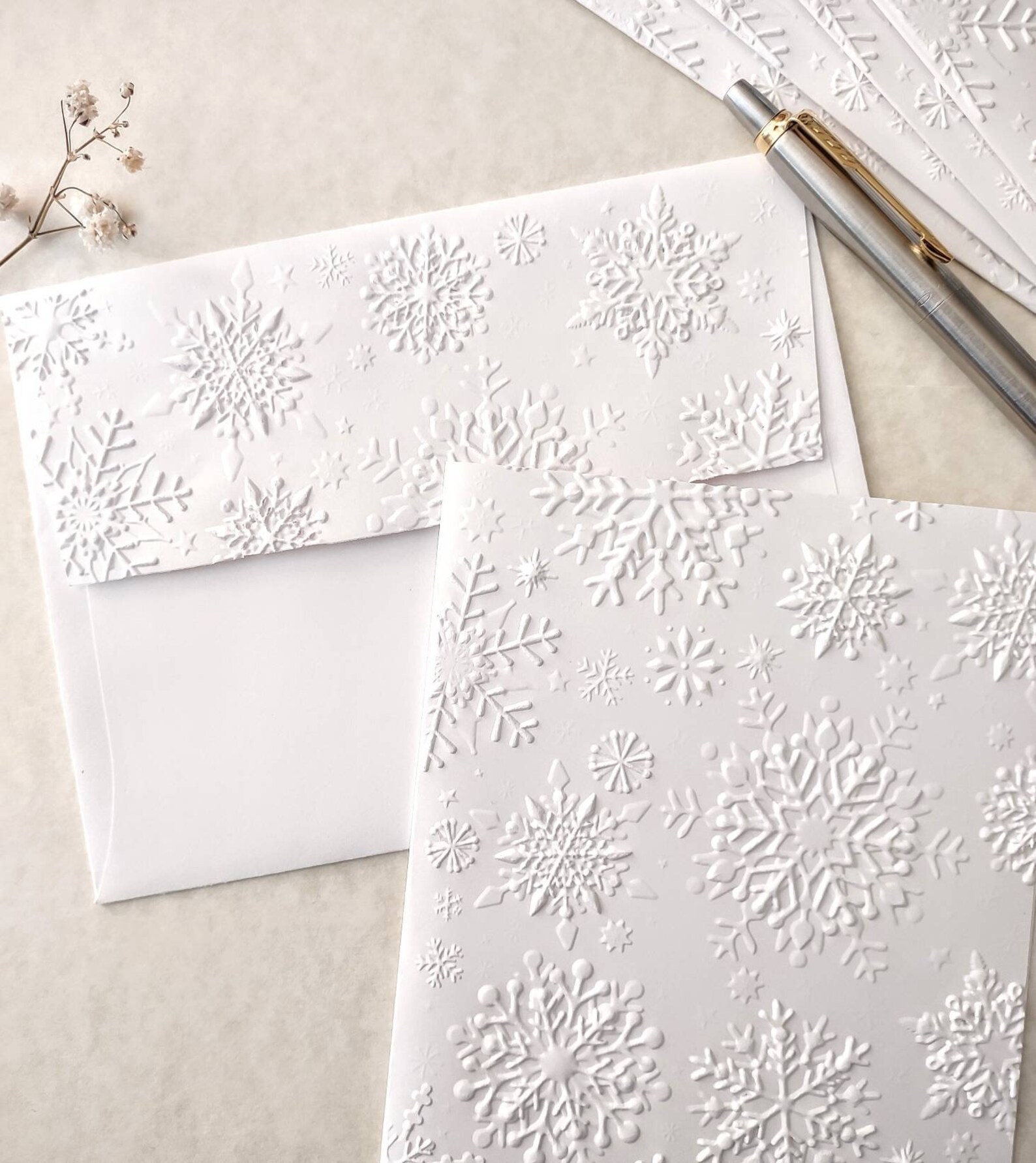 10 Embossed Snowflake Cards, Winter Stationery, White Embossed ...
