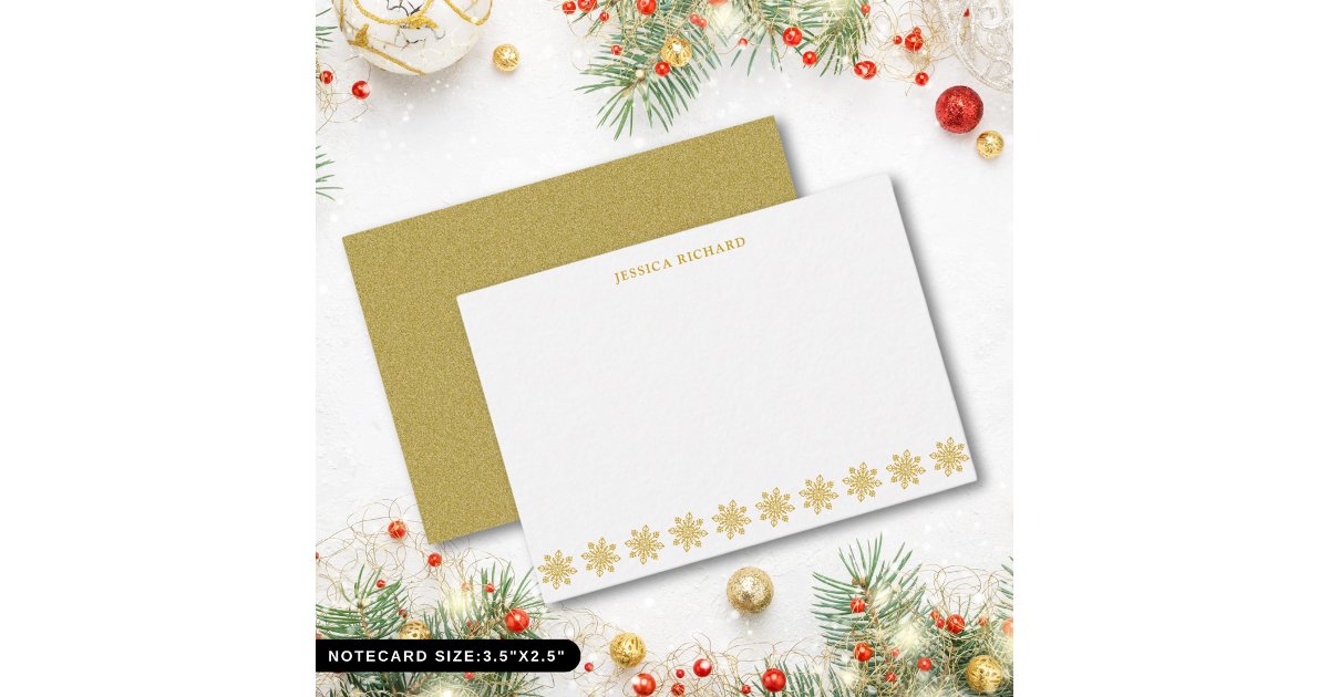 Elegant Gold Snowflake Personalized Note Card | Zazzle