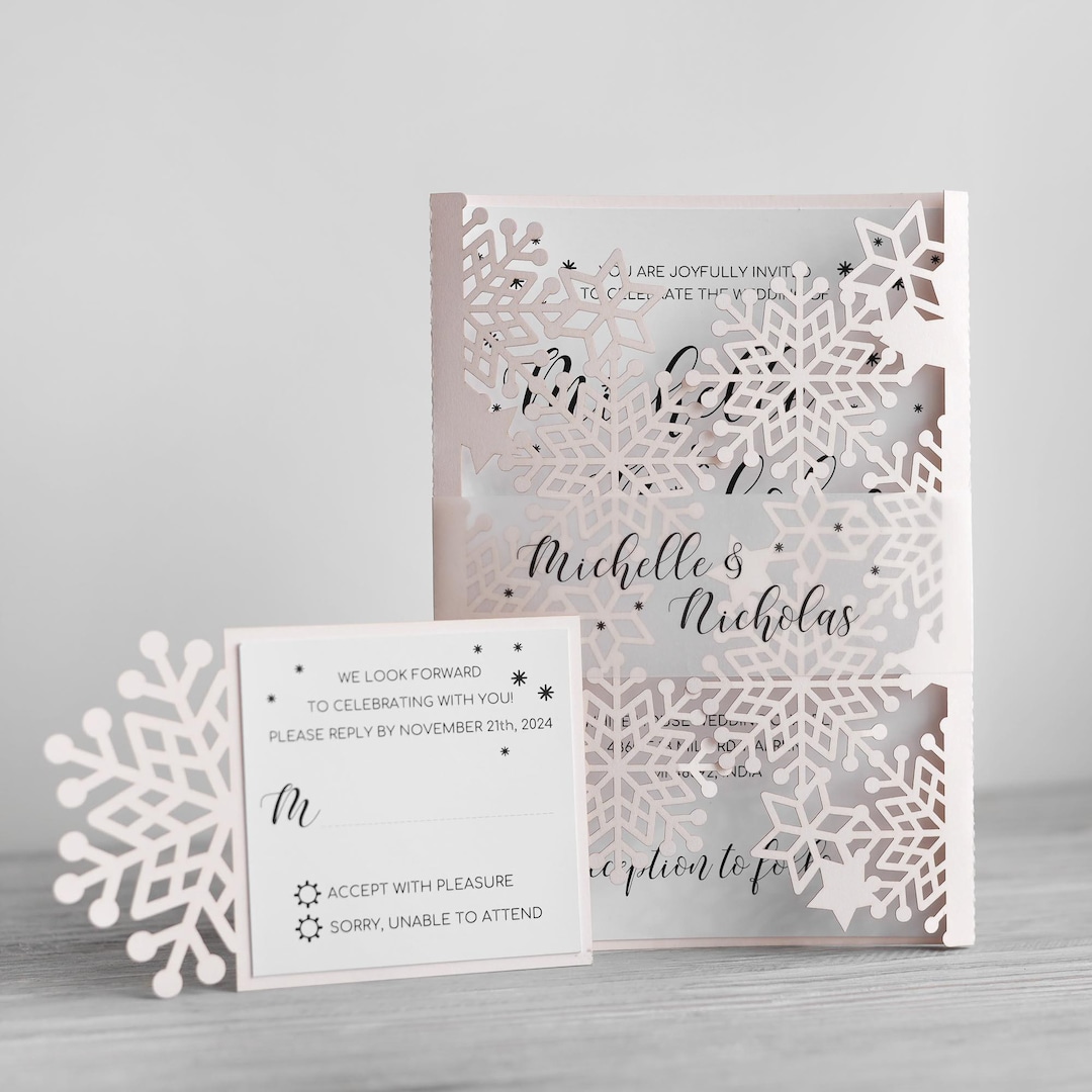 Snowflakes Wedding Invitation | Snowflake wedding invitation, Wedding ...