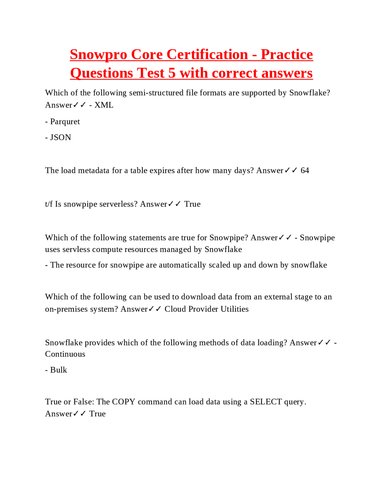 SNOWFLAKE TEST QUESTIONS WITH CORRECT ANSWERS - SNOWFLAKE - Stuvia US