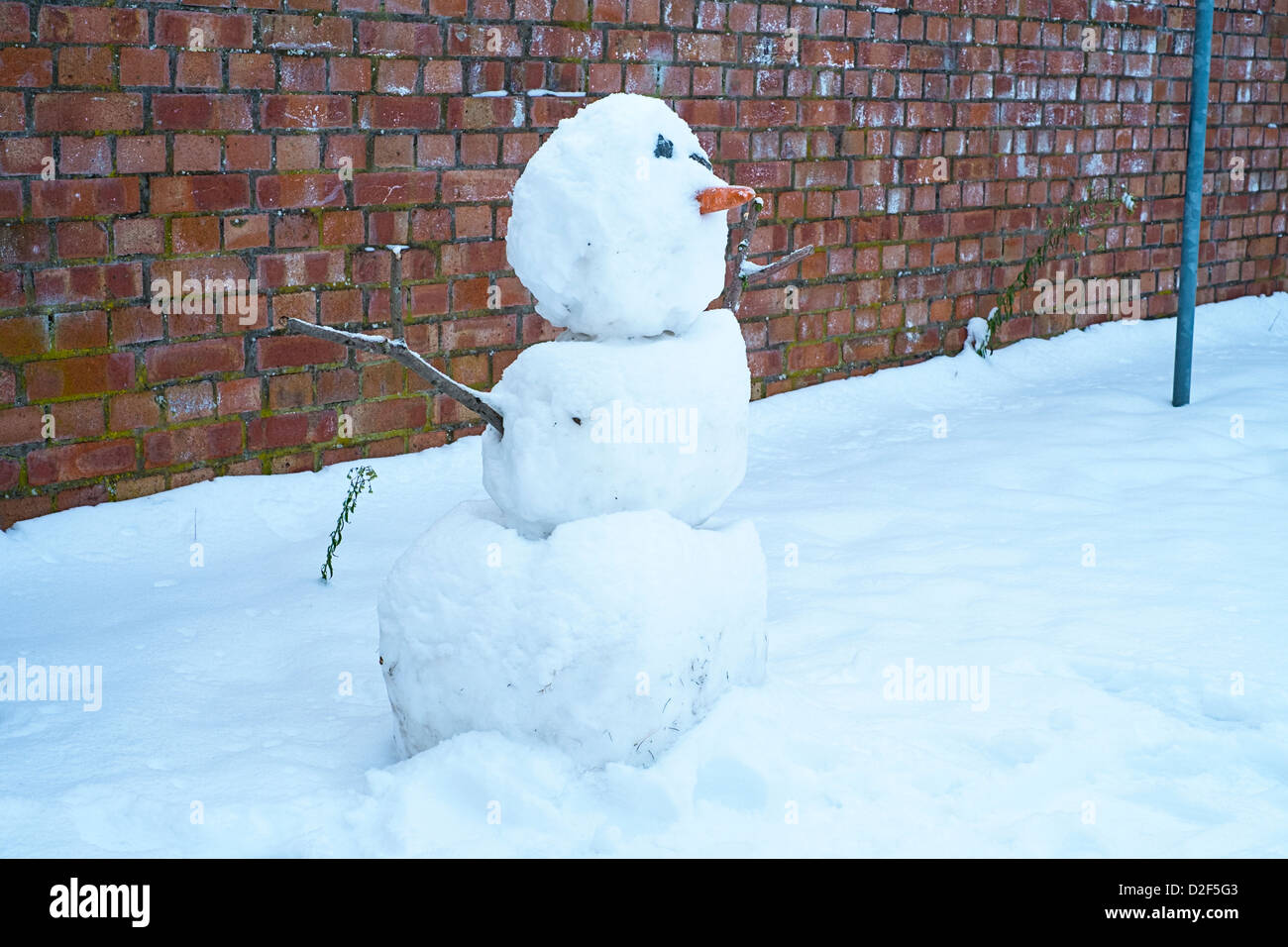 Little snowman with carrot nose in the snow Stock Photo - Alamy