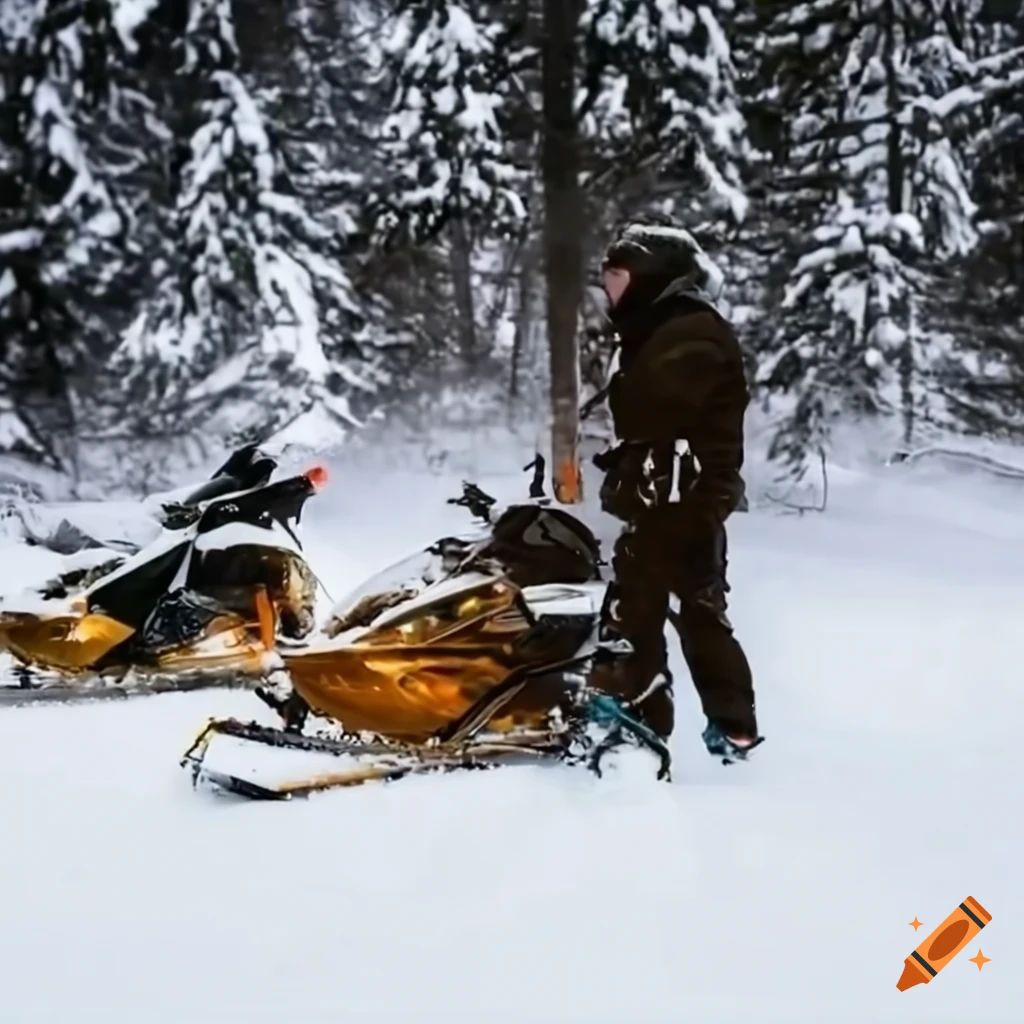 Premium Photo | Skier on a snowmobile in the middle of a snowy forest ...