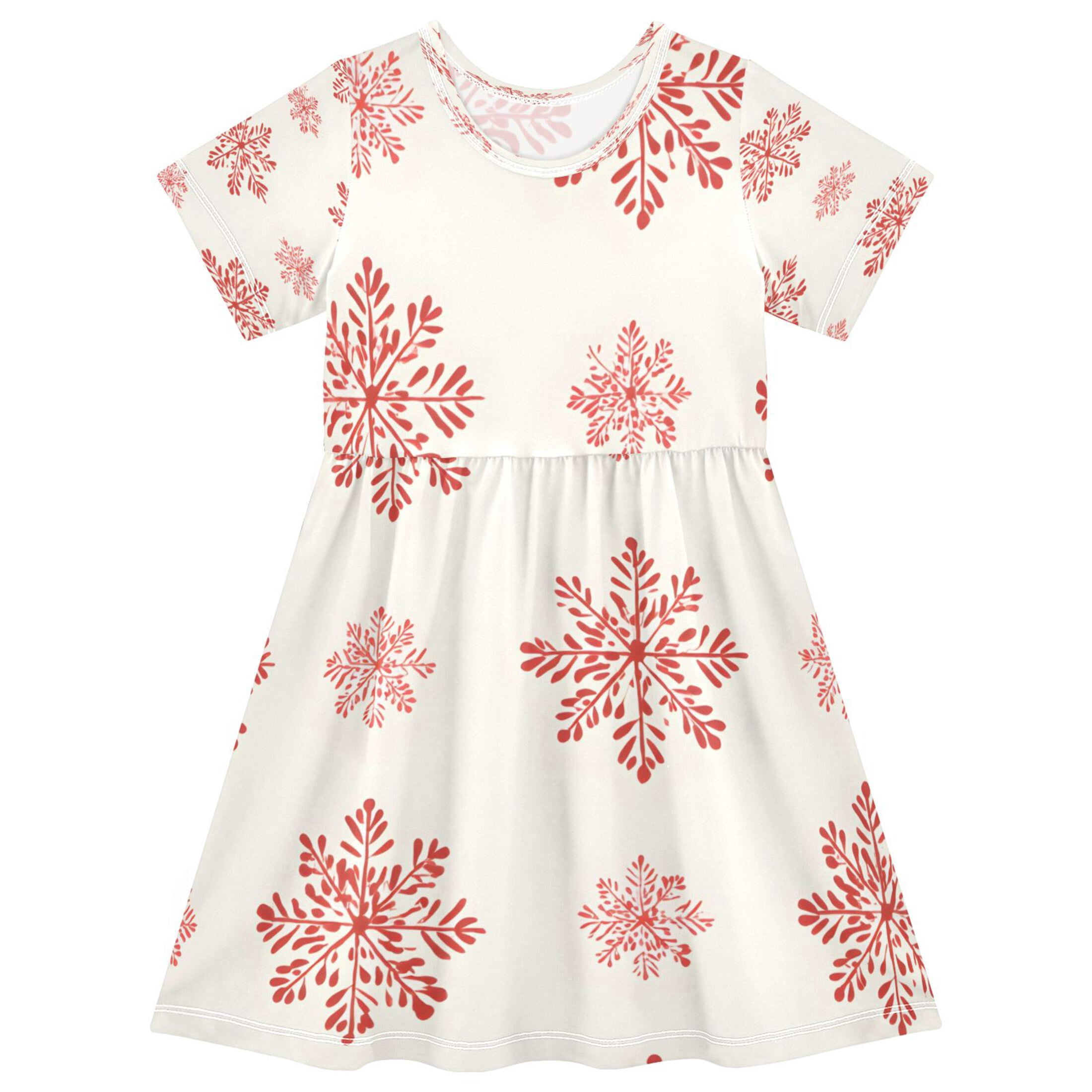 BZSMCE Short Sleeve Dress A-line Silhouette Red Snow Flower White ...