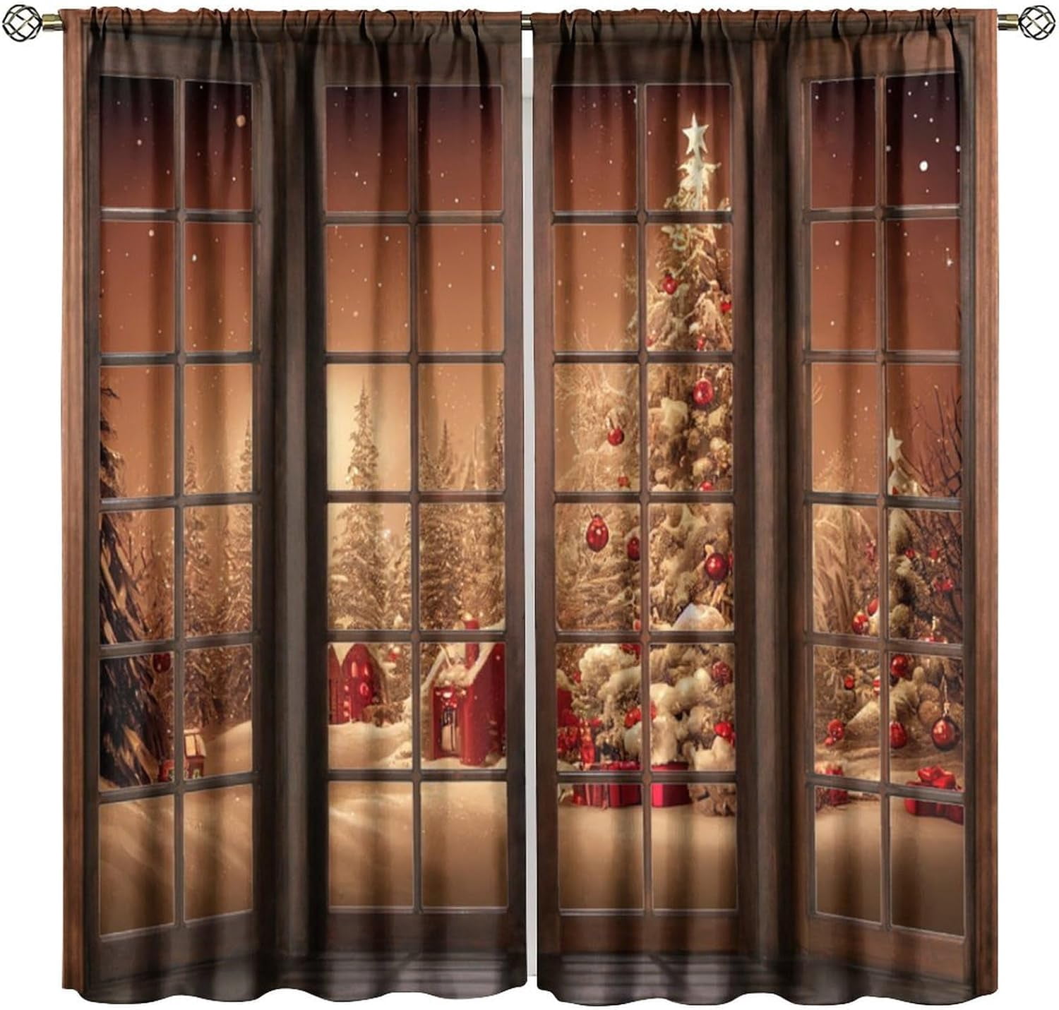 Christmas Tree Blackout Curtains, Snowy Night Landscape Pattern Window ...