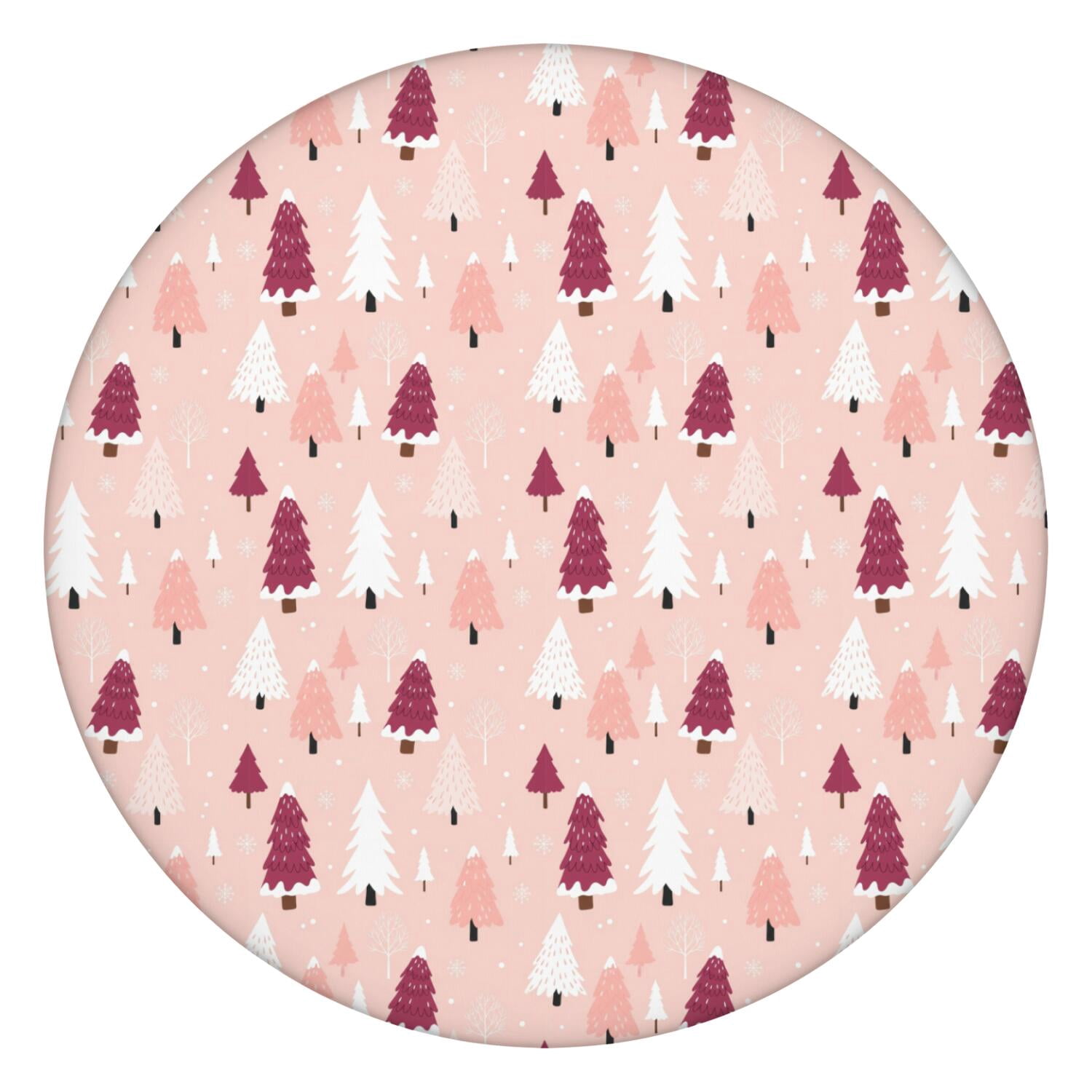 Christmas Tree Snow Pink Pattern Round Elastic Tablecloth, 36-44 Inch ...