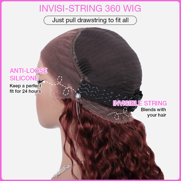 #33 Reddish Brown Invisi-String Snug Fit Water Wave 360 HD Lace Fronta ...