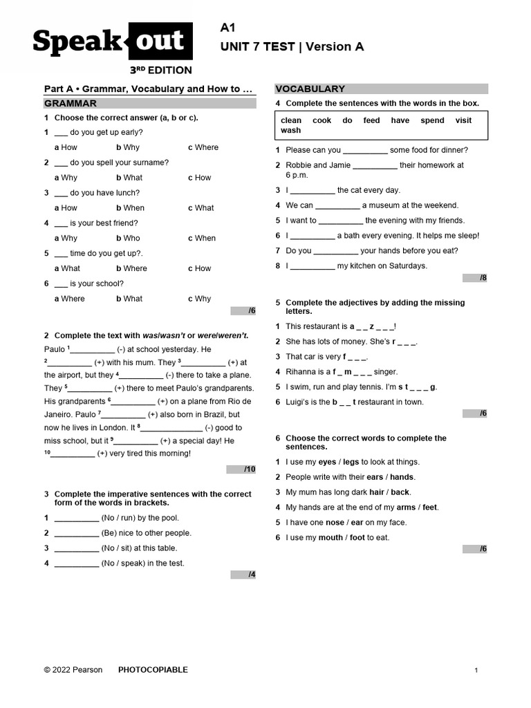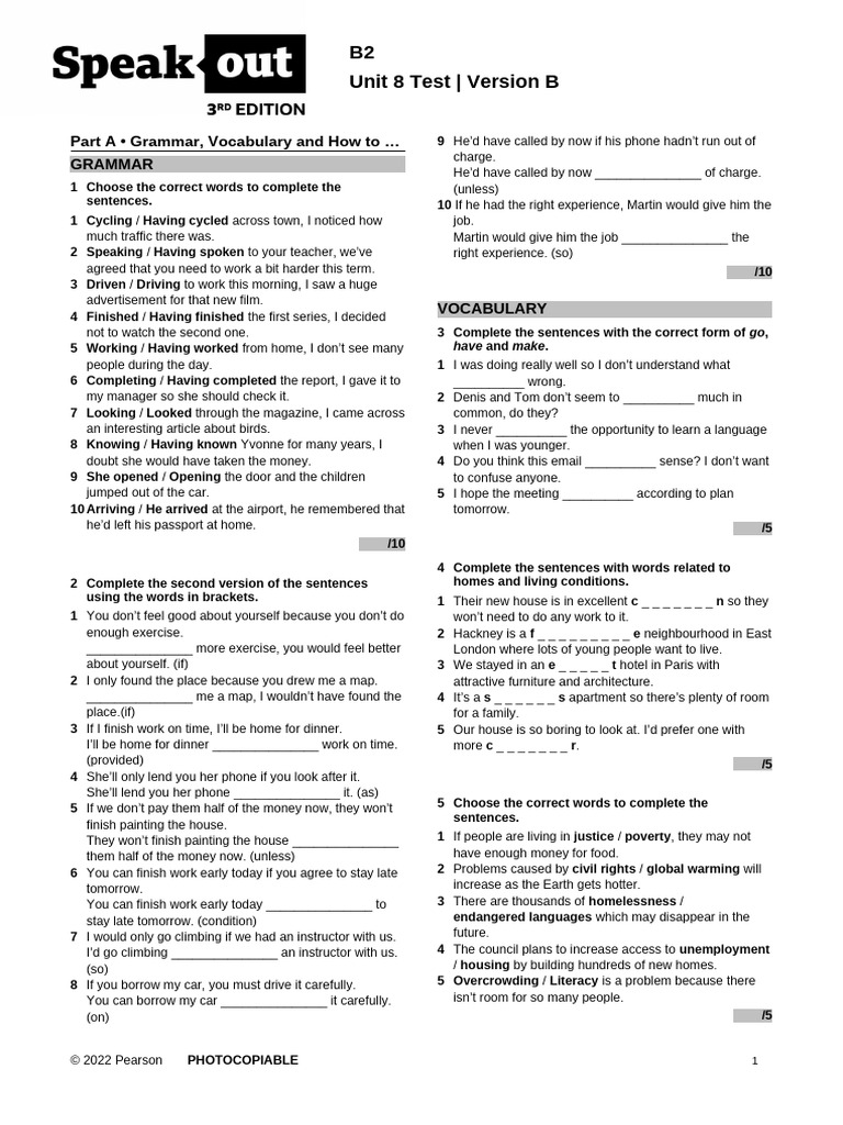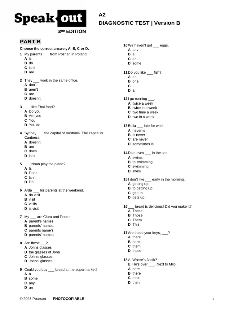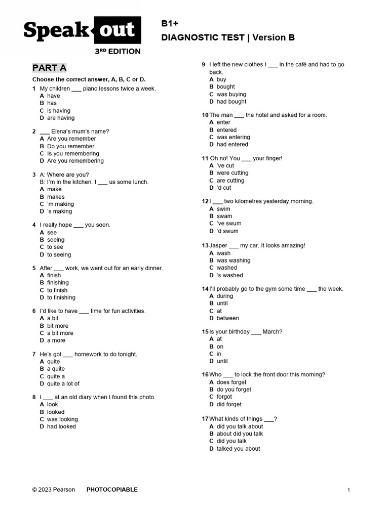 SO3 - B1+ - Diagnostic Test - Part A - Version B | PDF