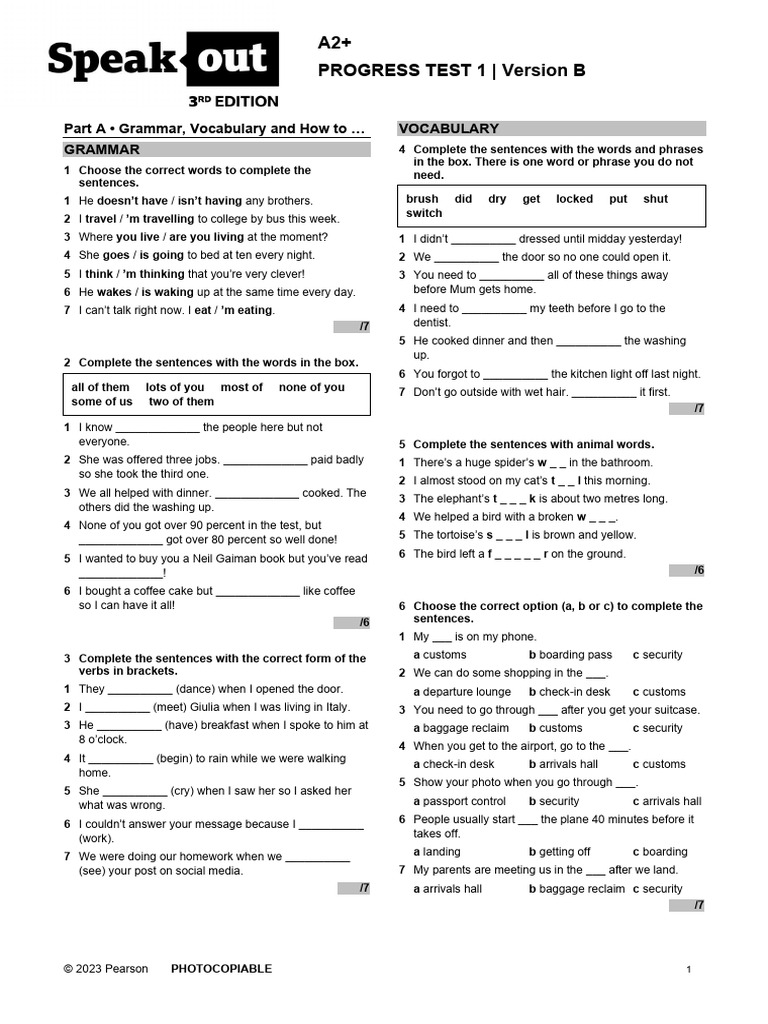 SO3 - A2+ - Progress Test - 1B | PDF | Airport | Frog