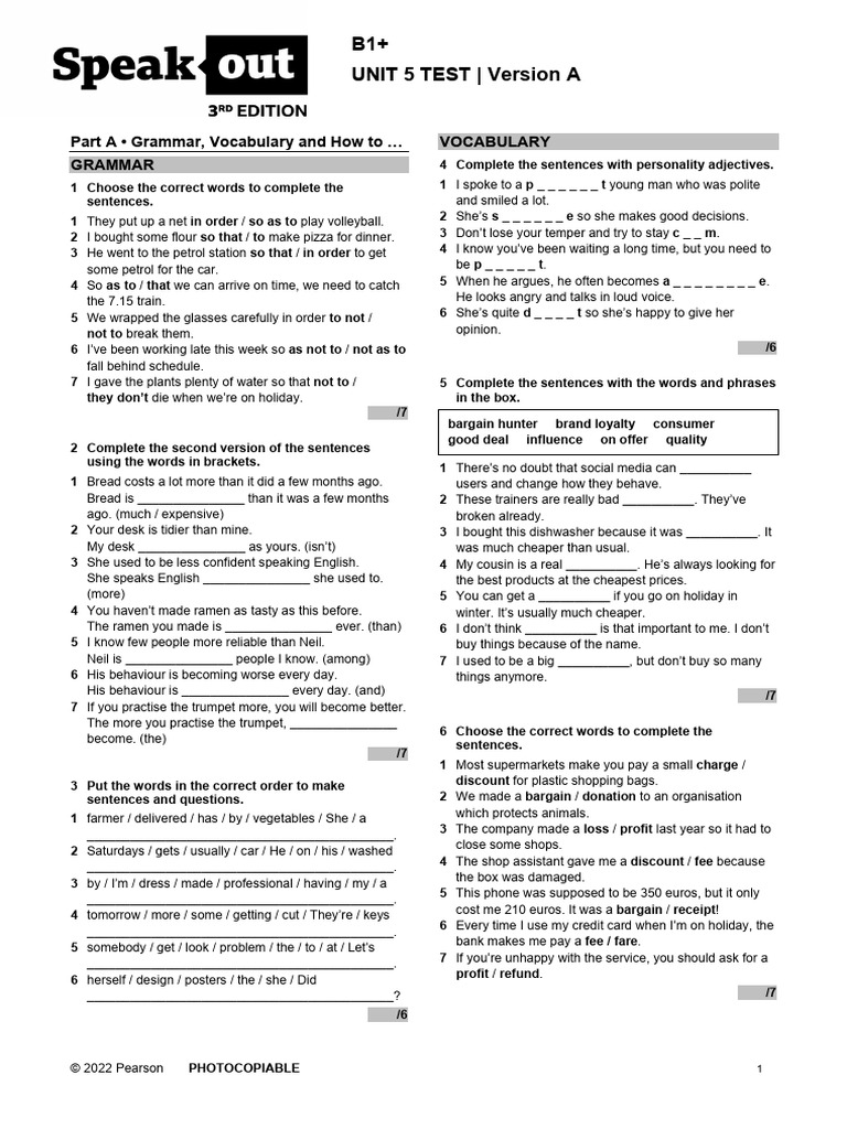 SO3 - B1+ - Unit Test - U5A | PDF | Online Shopping | Brand