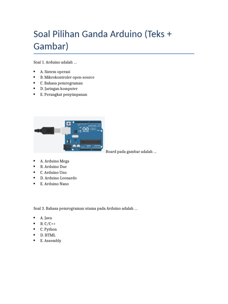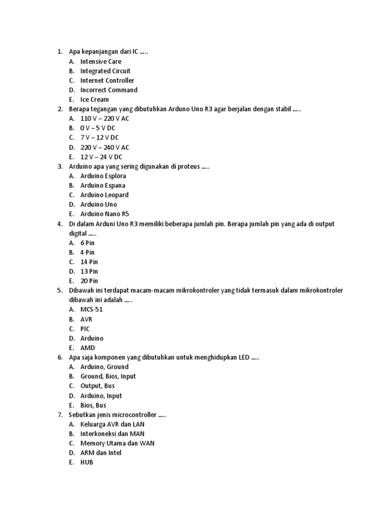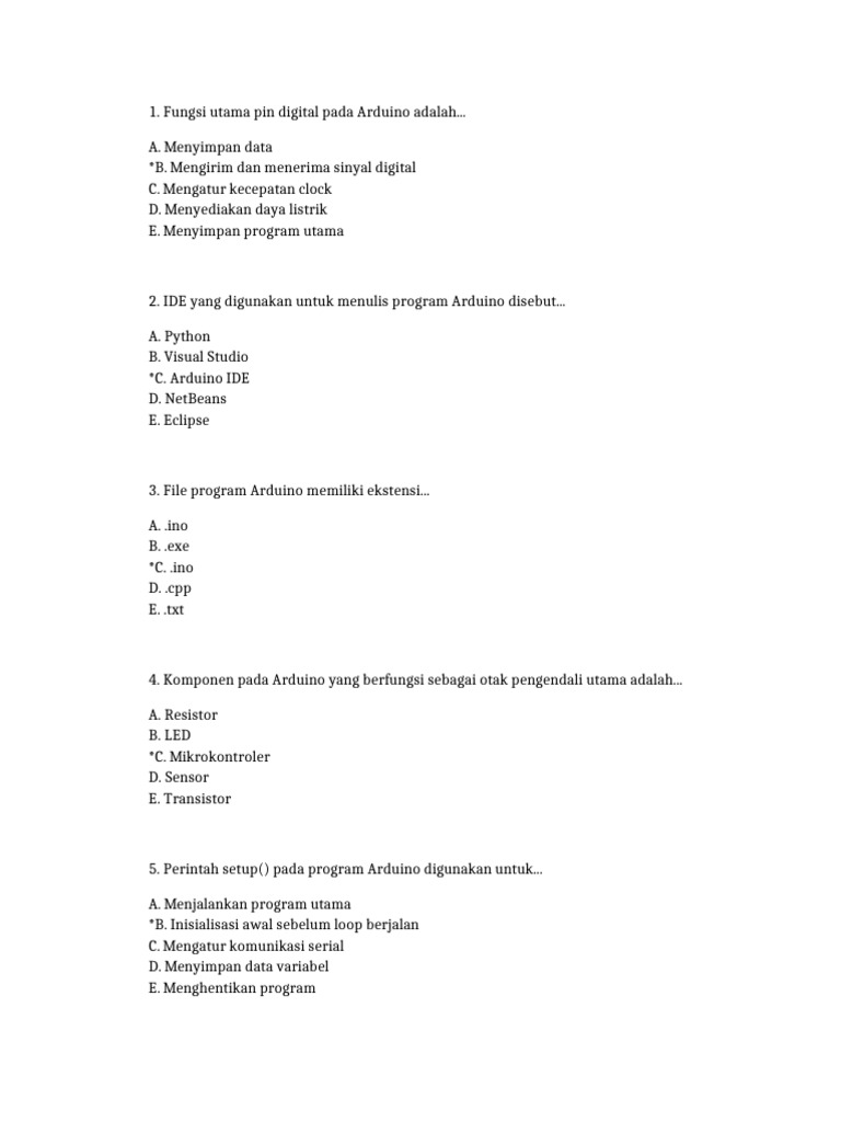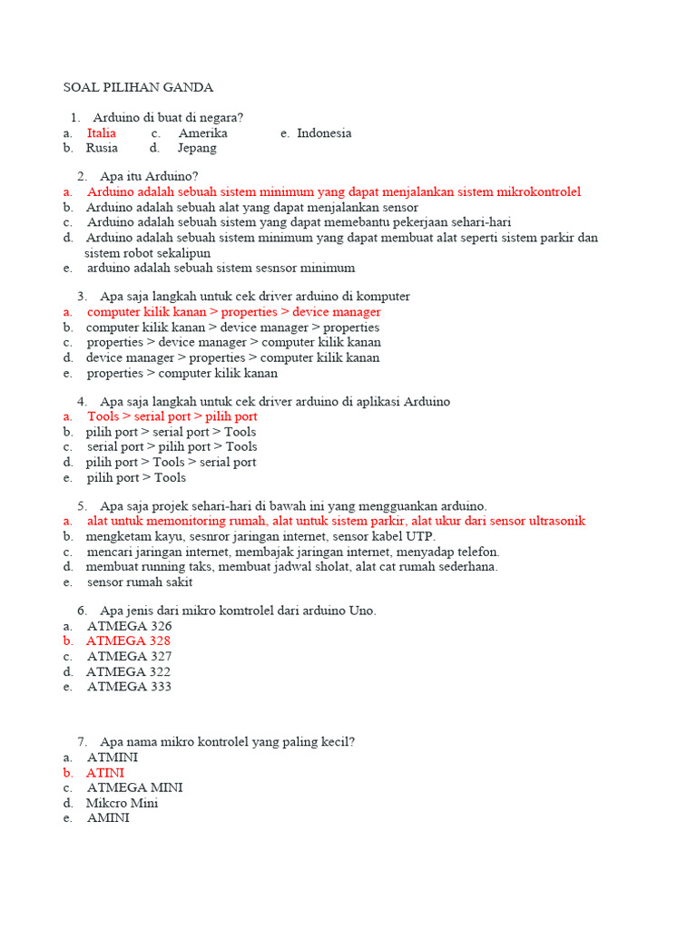 Soal dan Jawaban Mikrokontroler Arduino | PDF | Metode & Bahan Ajar ...