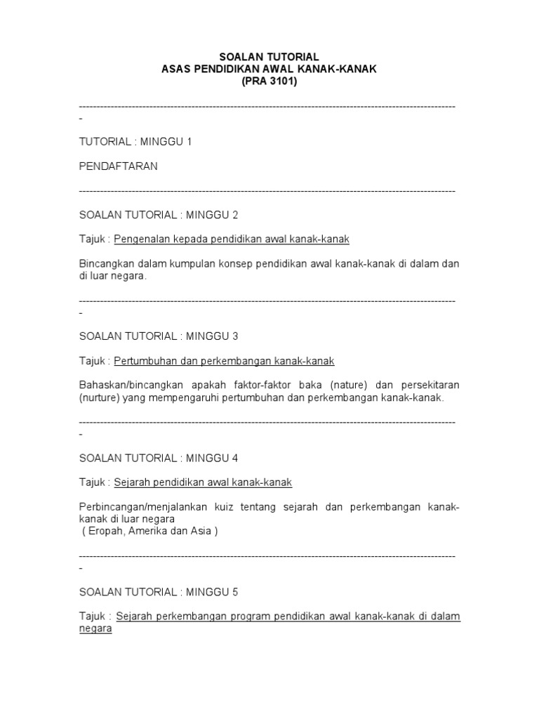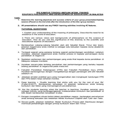 Eppd1013 Soalan Tutorial 2 2017 | PDF