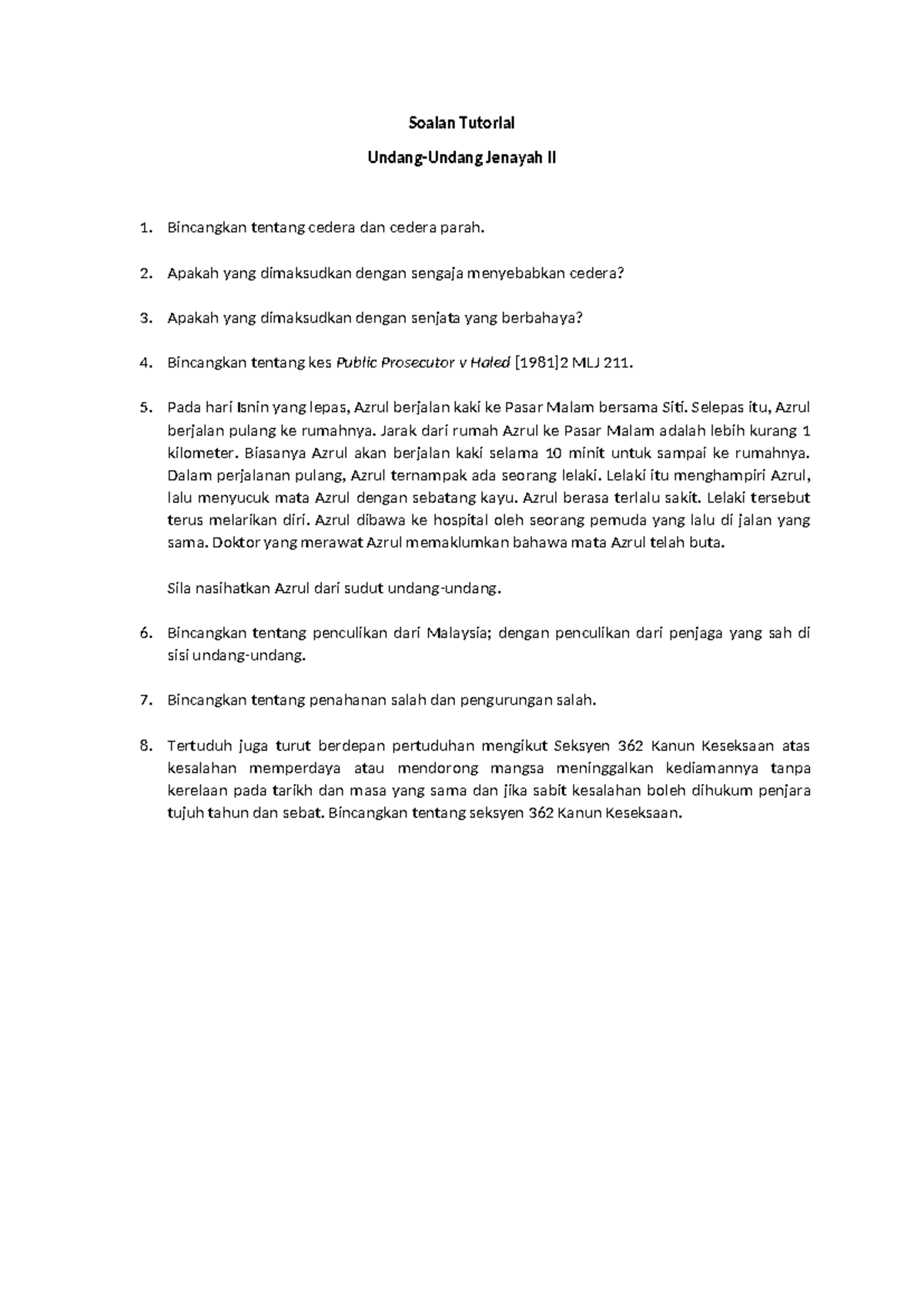 Soalan Tutorial 2 - Undang-Undang Jenayah II - Soalan Tutorial Undang ...