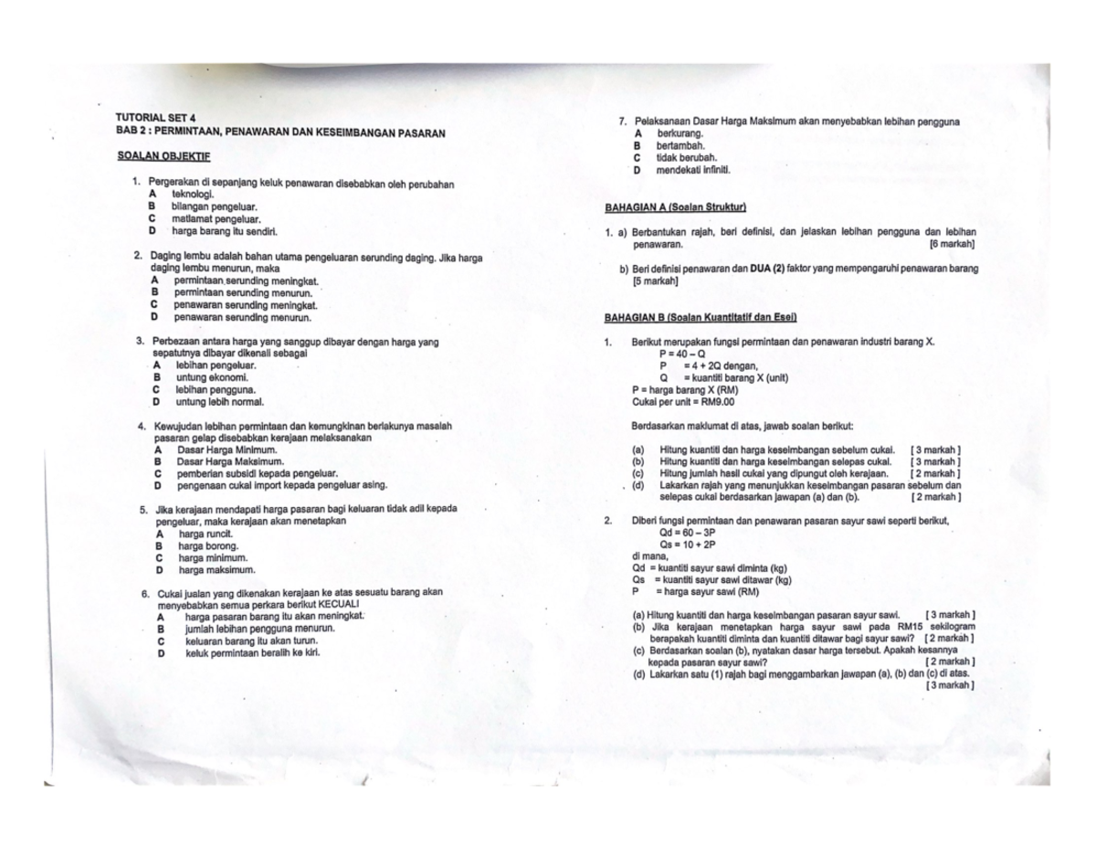 Eko Set4 - Soalan tutorial - Economy sem II - Studocu
