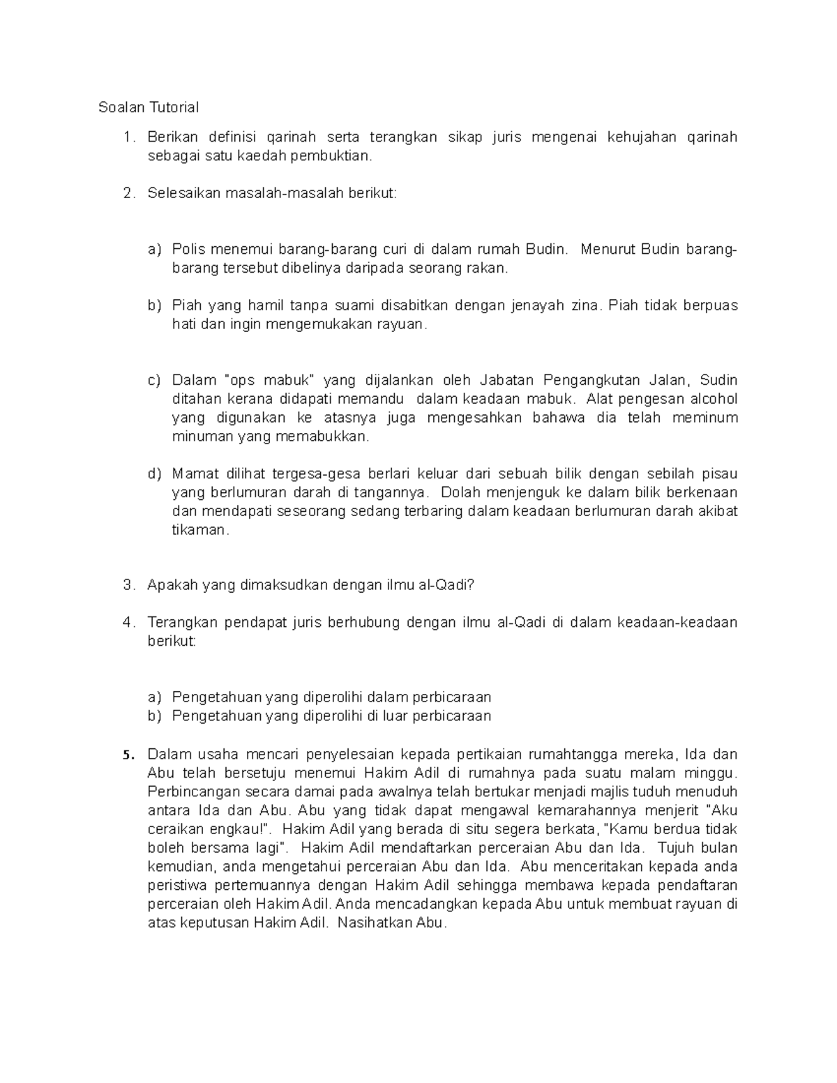 Soalan tutorial qarinah dan ilmu al qadi - Soalan Tutorial Berikan ...