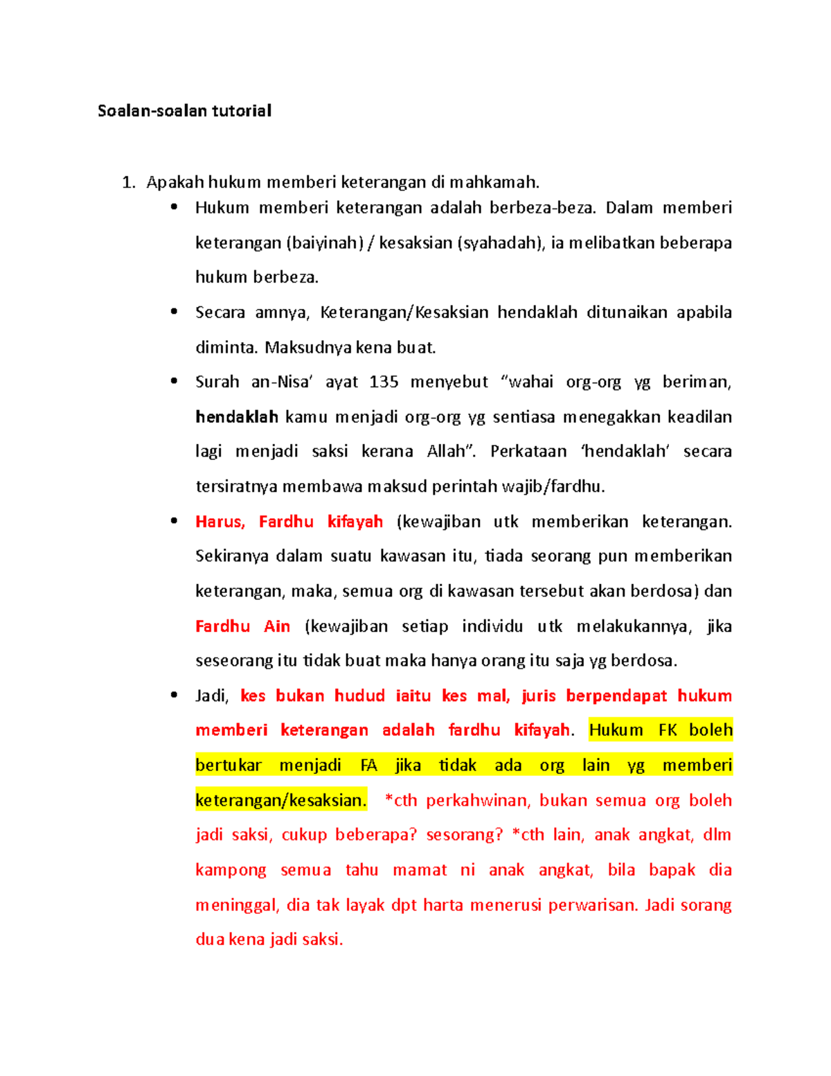 Soalan tutorial hukum memberi keterangan - Soalan-soalan tutorial ...