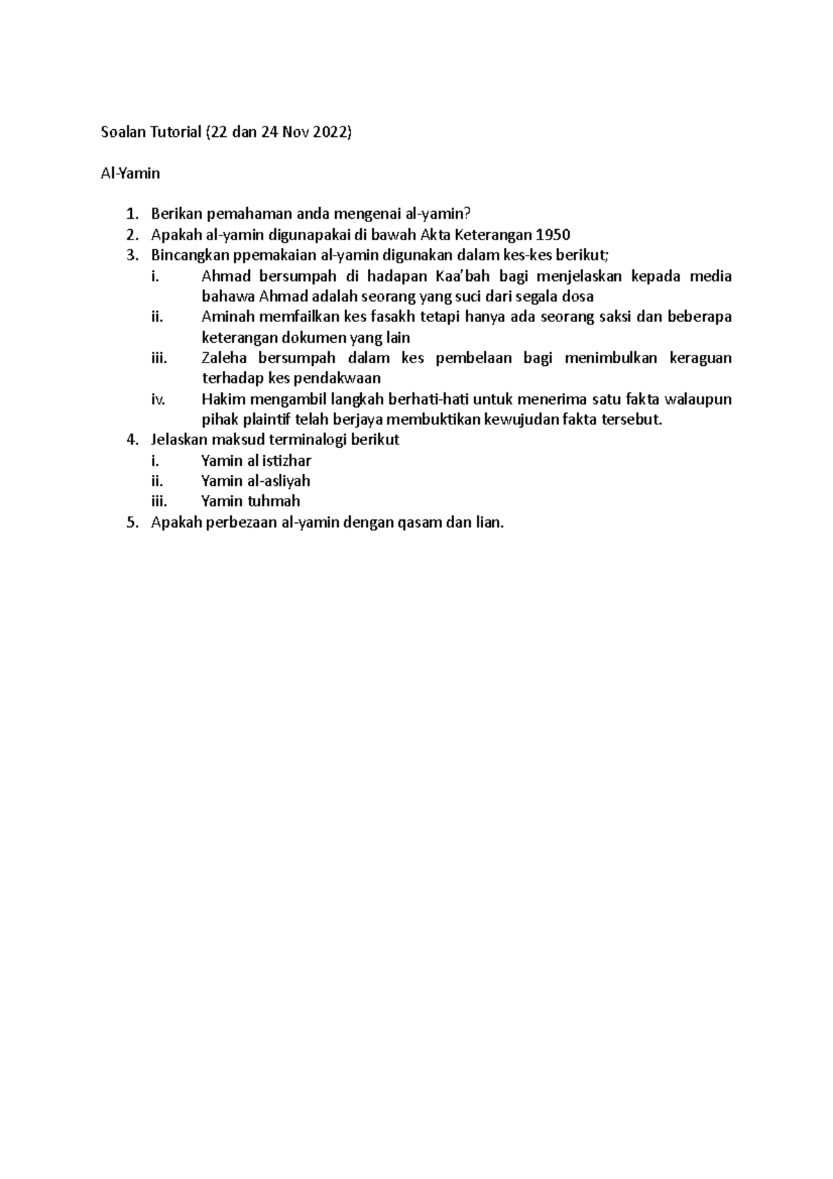 Soalan Tutorial 22,24 - Soalan Tutorial (22 dan 24 Nov 2022) Al-Yamin ...
