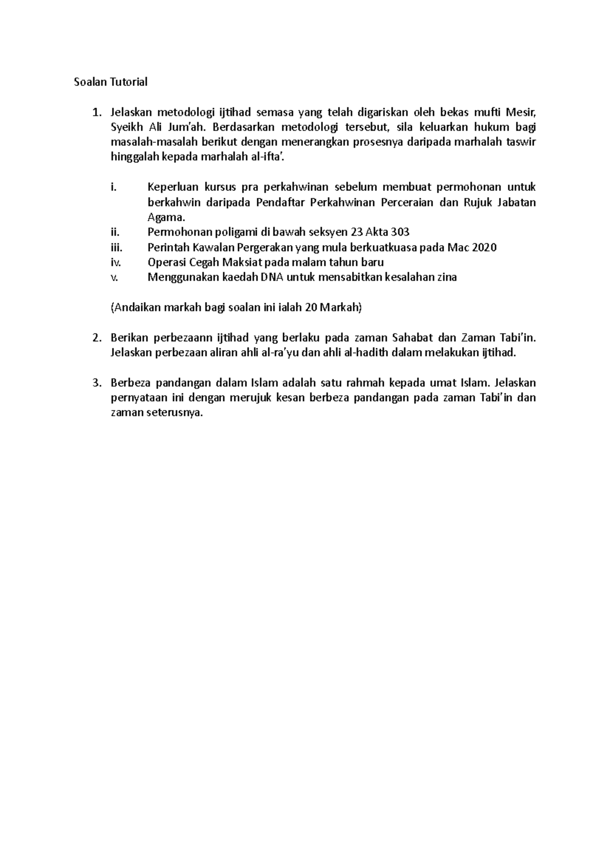 Soalan Tutorial 18 - Soalan Tutorial Jelaskan metodologi ijtihad semasa ...