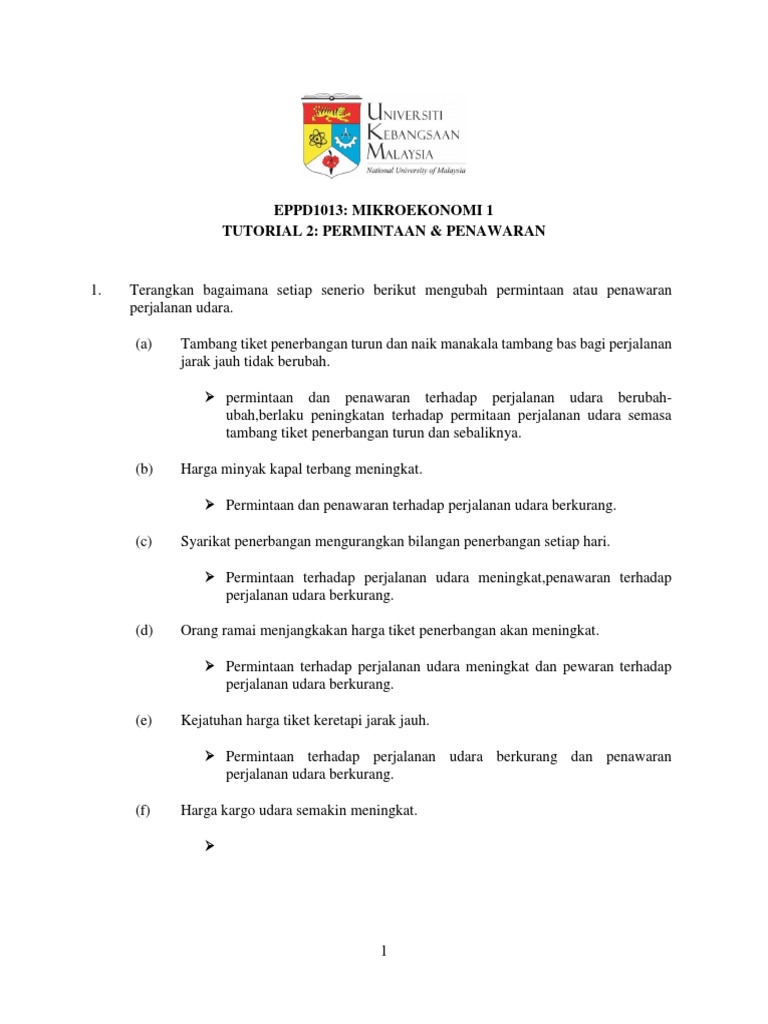 Modul soalan tutorial Mikroekonomi AE015 - economy - Studocu