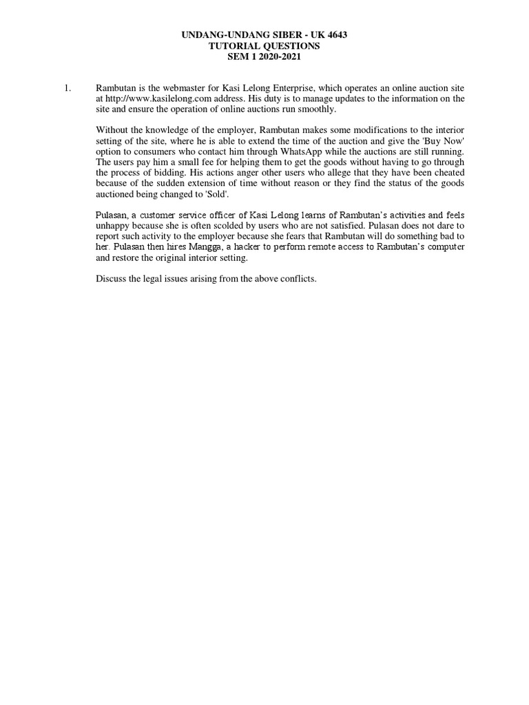 Soalan Tutorial Uk 4073 Sem 1 2023-2024 (Set 1) | PDF