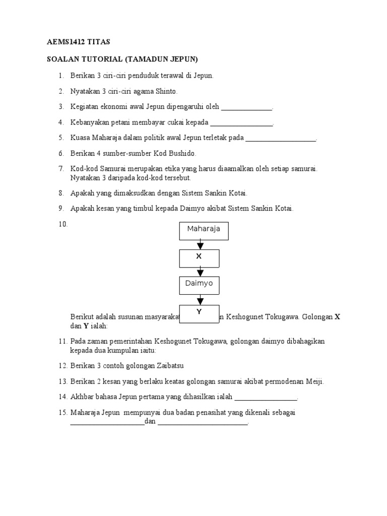 Soalan Tutorial SJHK3123 - Semester 1 | PDF