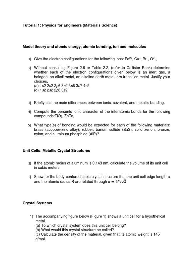 Tutorial 1 KKEE1133 Soalan | PDF | Crystal Structure | X Ray ...