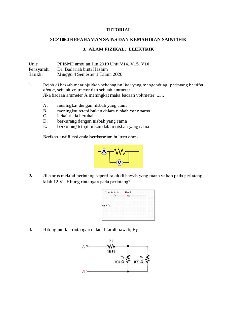 M4 Soalan Tutorial Alam Fzikal-Elektrik | PDF