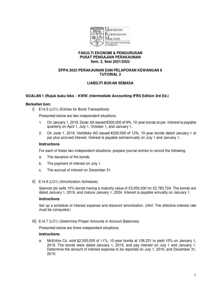 Soalan Tutorial Liabiliti Bukan Semasa | PDF | Bonds (Finance) | Debt