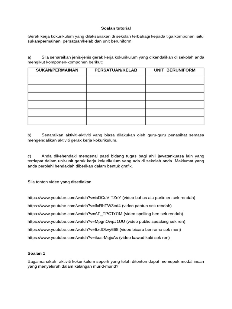 Soalan Tutorial - Gerak Kerja Kokurikulum Di Sekolah Dan Strategi ...
