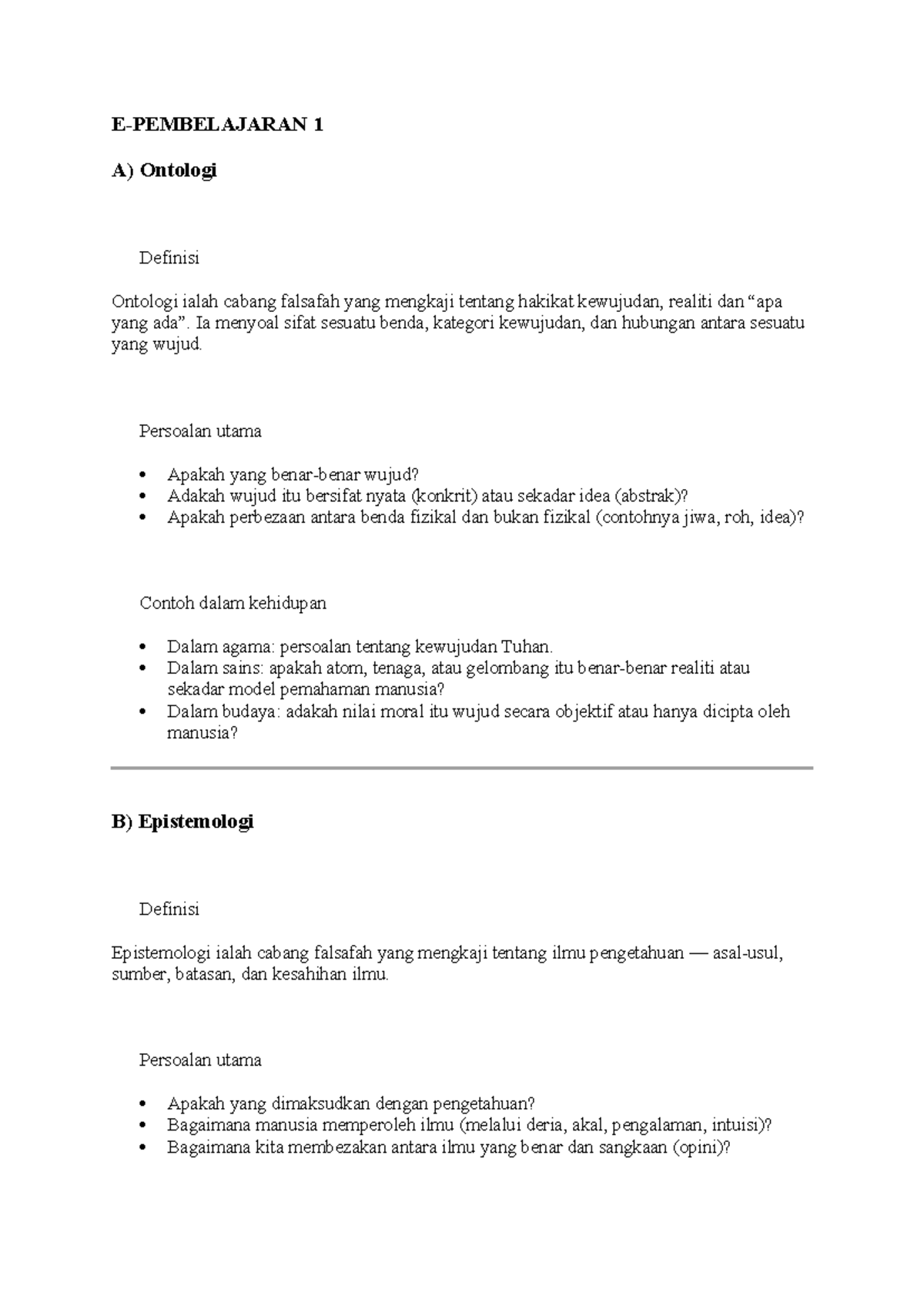 Soalan Tugasan - Tutorial Falsafah: Ontologi & Epistemologi - Studocu