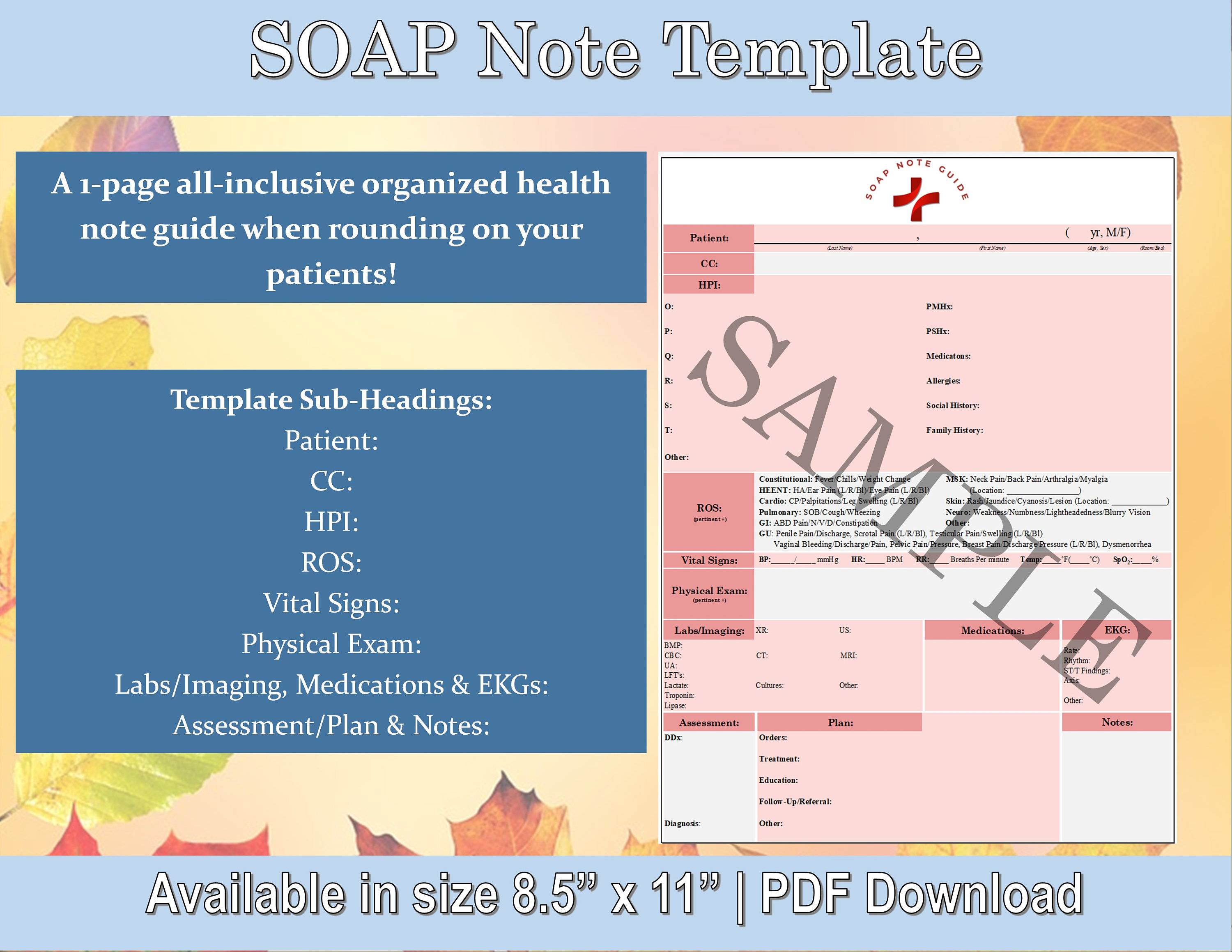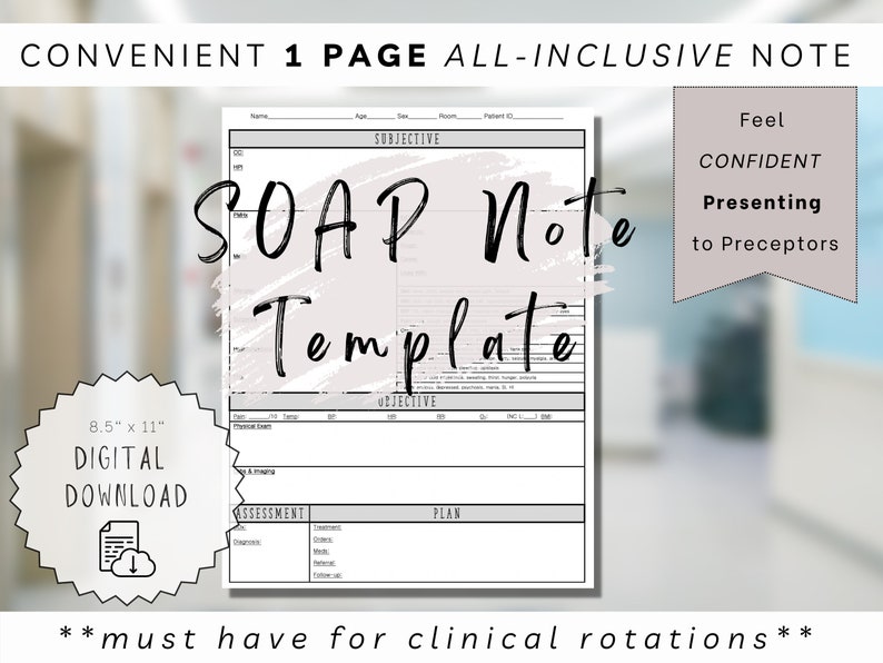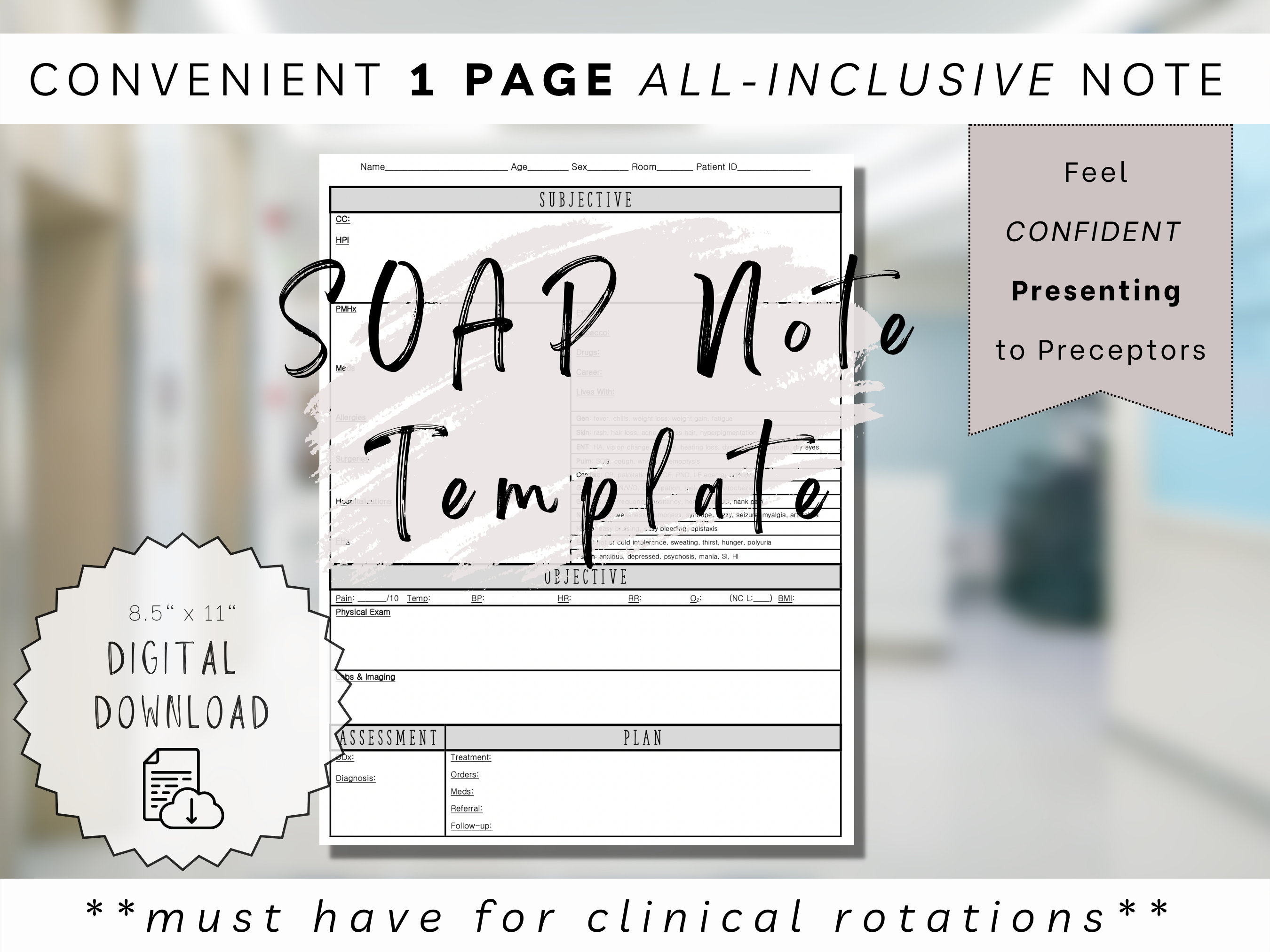 SOAP Note Template | Clinical Rotation Guide (digital Download) - Etsy