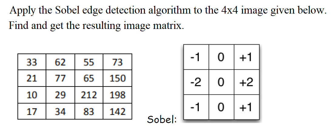Solved Apply the Sobel edge detection algorithm to the 4×4 | Chegg.com